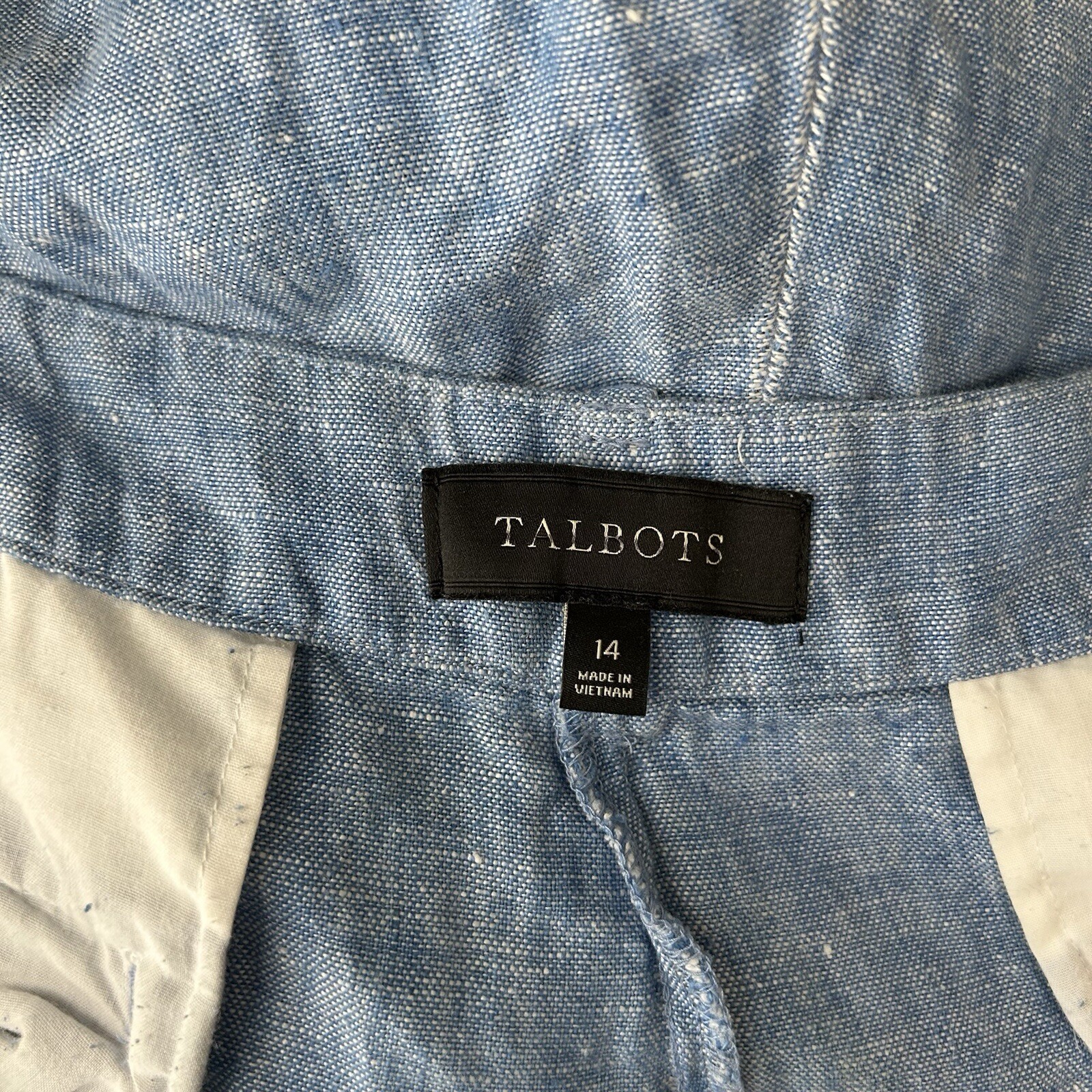 Talbots Pants Womens 14 Blue Linen Wide Leg Relaxed Beach