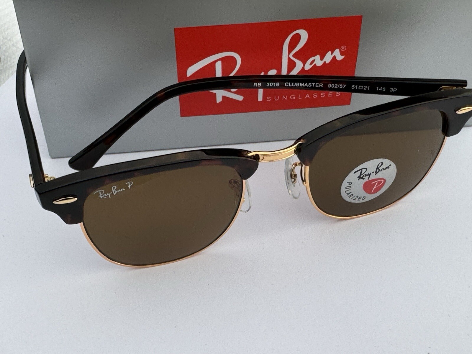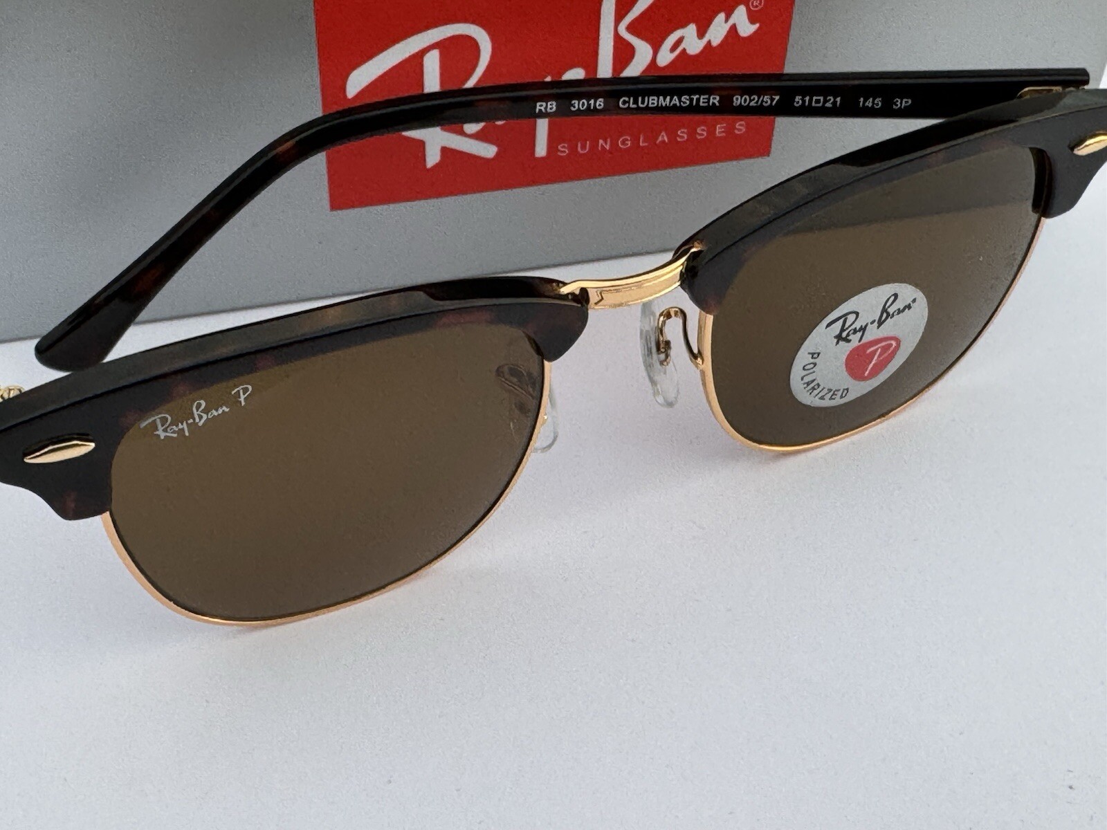 как выглядит New Ray-Ban RB3016 902/57 CLUBMASTER Havana Frame Polarized Brown B15 Sunglasses фото