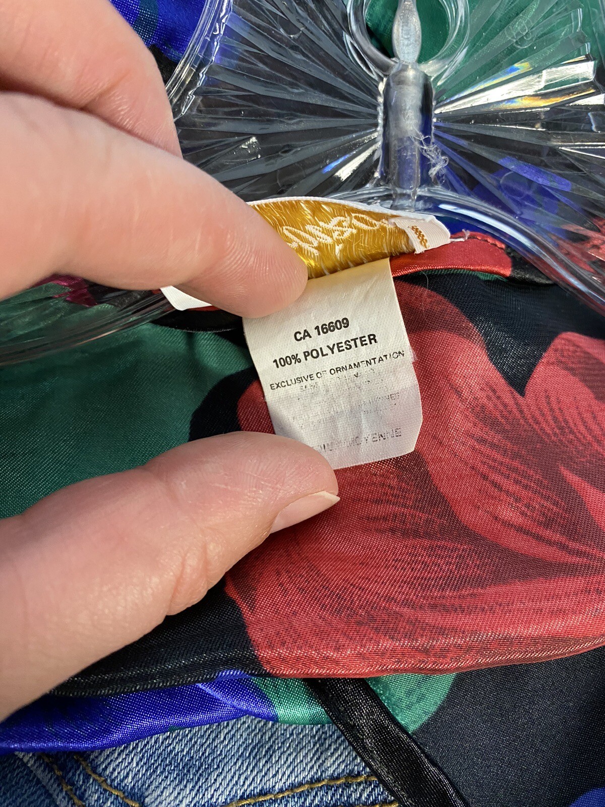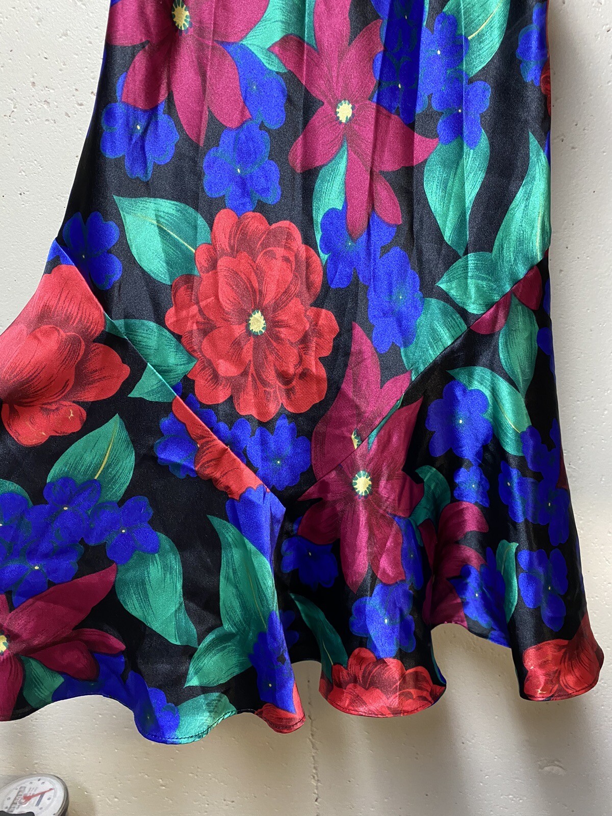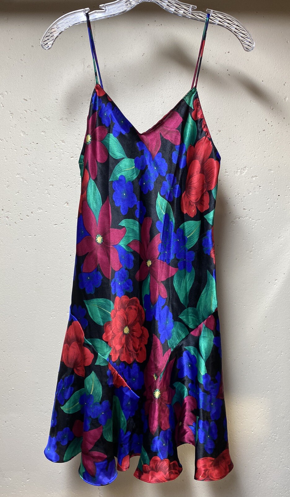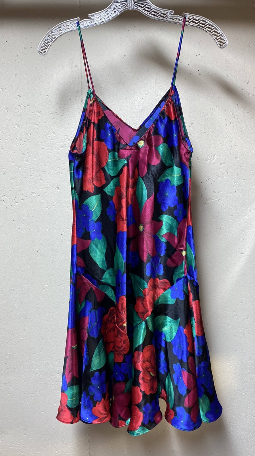 Vintage 90s Barbizon Satin Lingerie Slip Dress Robe Navy Floral Size M