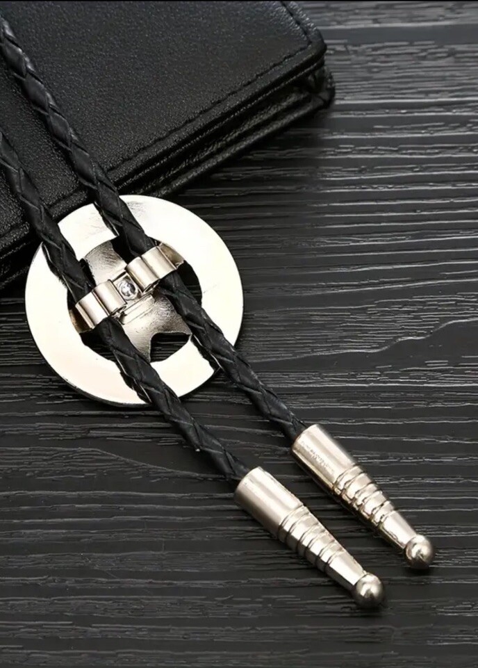 Rodeo Bolo Tie Western Cowboy Black Leather Necktie New Free Ship B3900