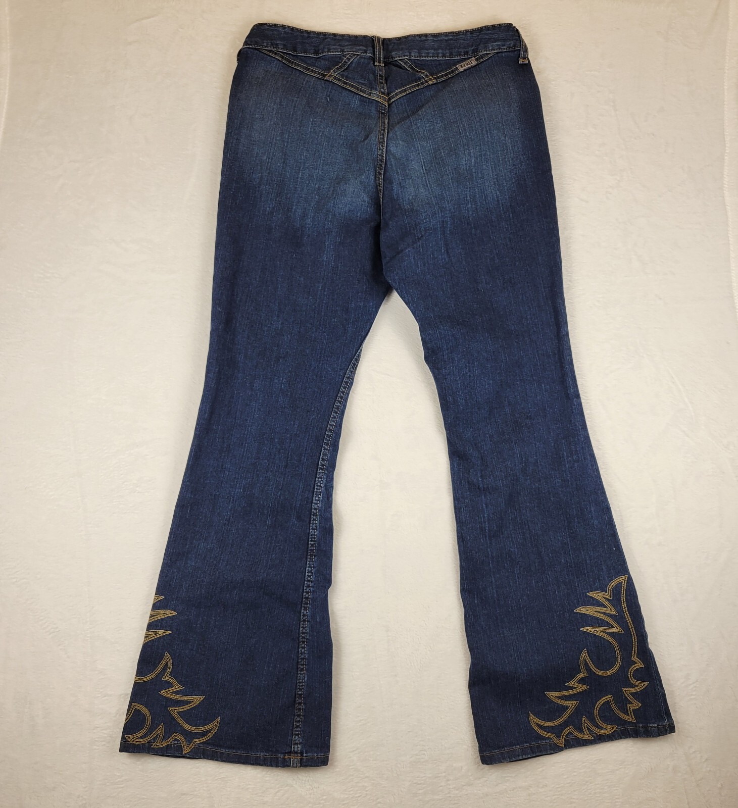 Cruel Denim Jeans Hannah 32X13R Moderate Rise Slim Hip Thigh Flare Embroidered