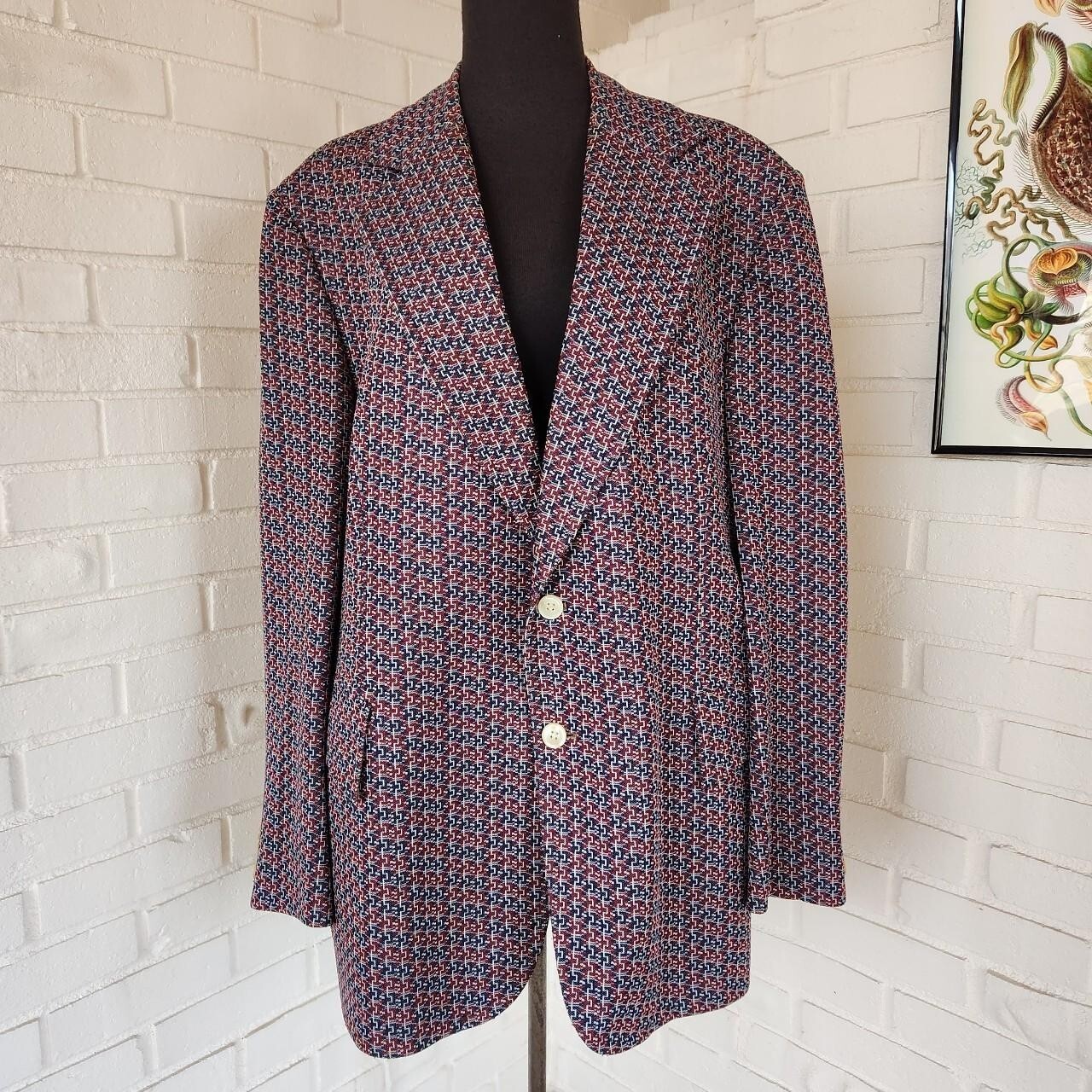 как выглядит Vtg 70s Mens Blazer Suit Jacket Red Blue L Polyester Disco фото