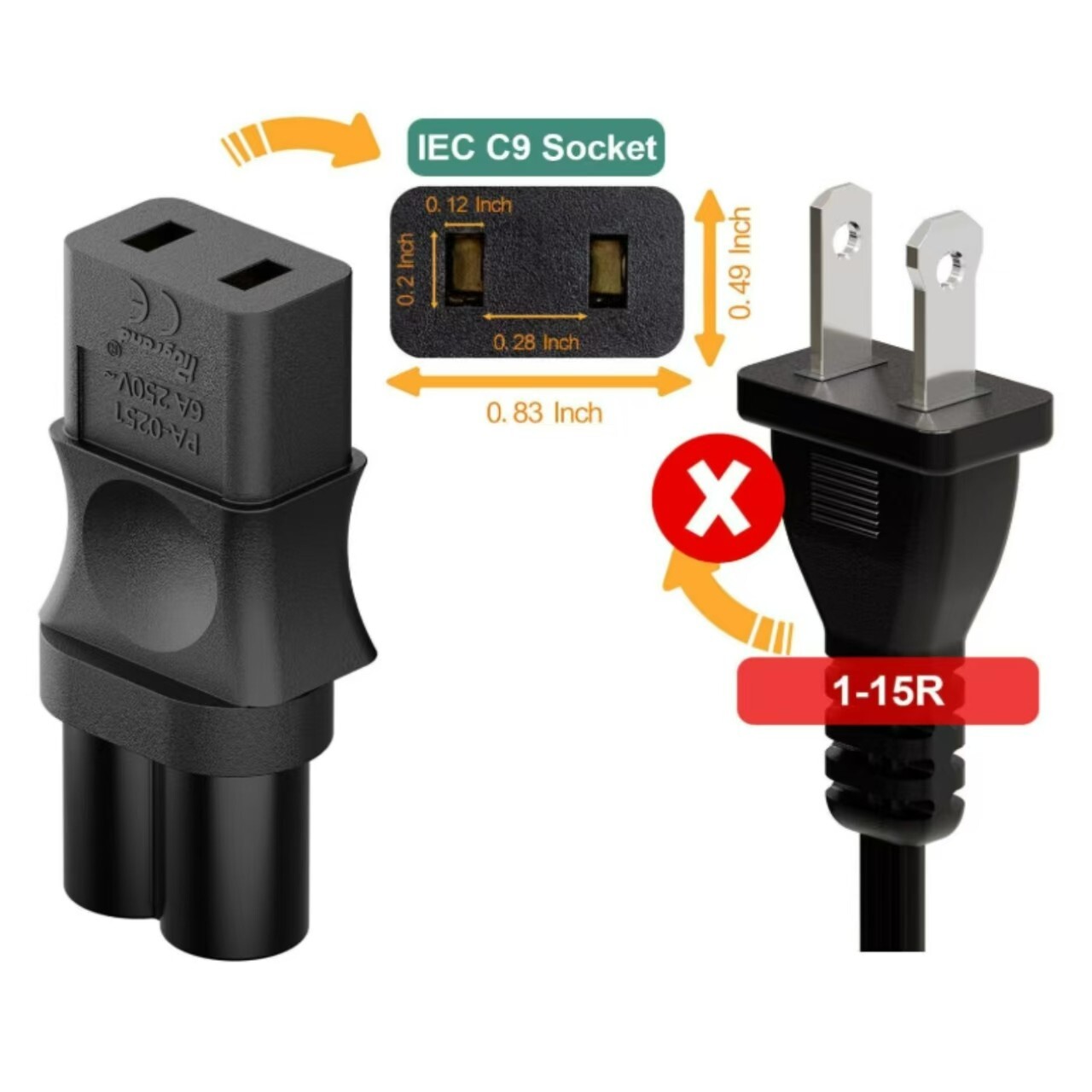 IEC C6 to C9 Power Adapter For Roland MK-80,D-50 Synthesizer,MKS-20/SG1D etc.