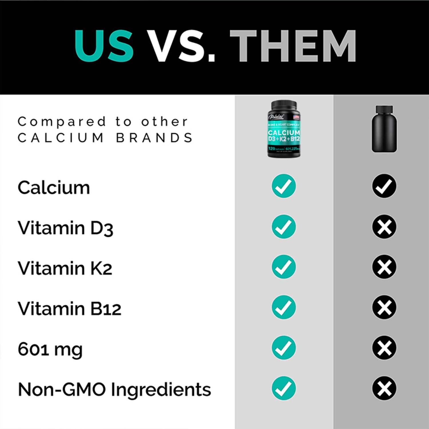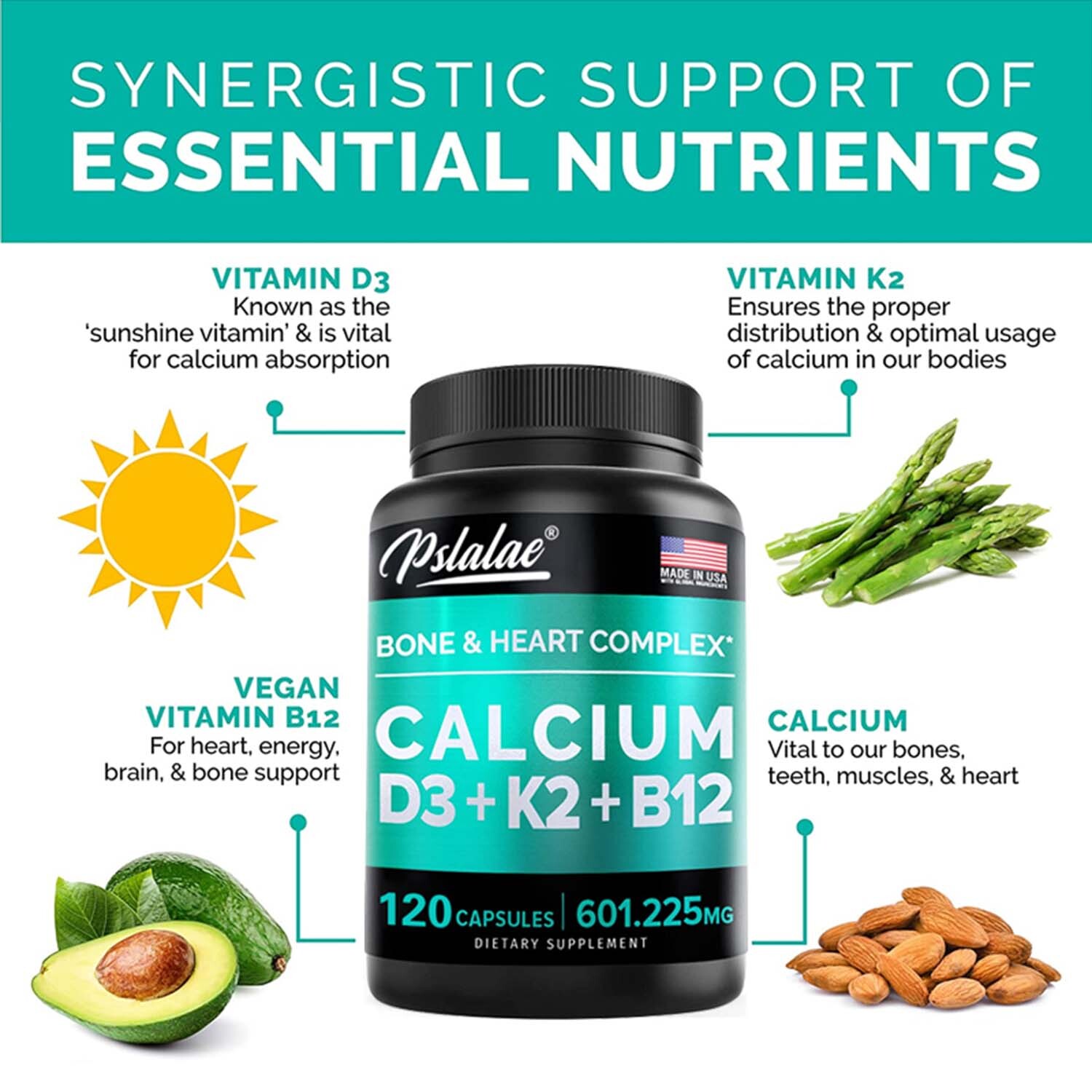 Active Ingredients: Calcium, Vitamin D3, K2, B12
