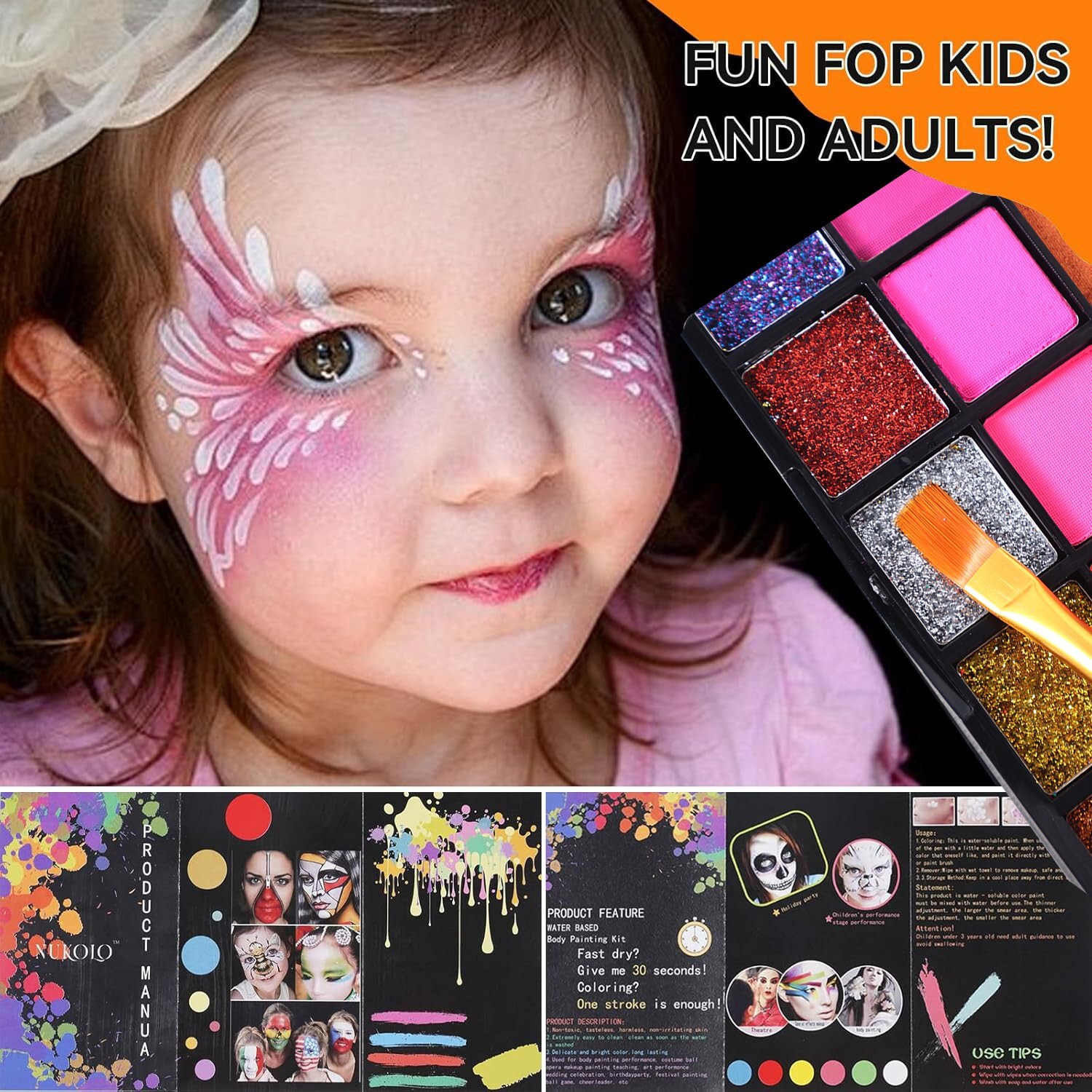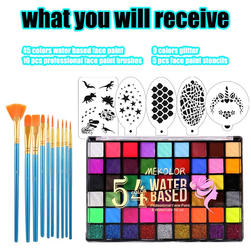 54 Colors Face Paint Kit with 9 colors Glitter For Kids Adults Party Events Kit