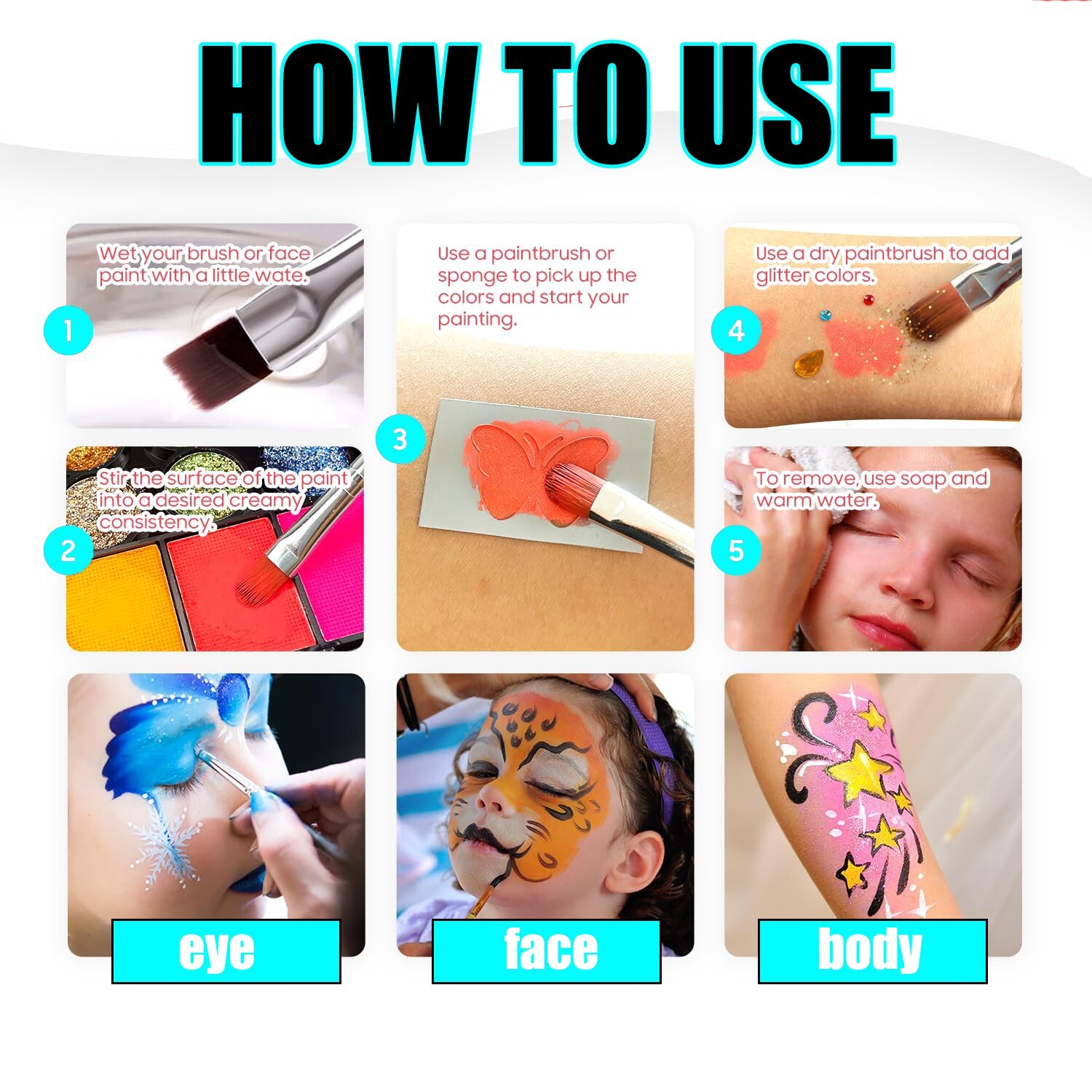 как выглядит 54 Colors Face Paint Kit with 9 colors Glitter For Kids Adults Party Events Kit фото