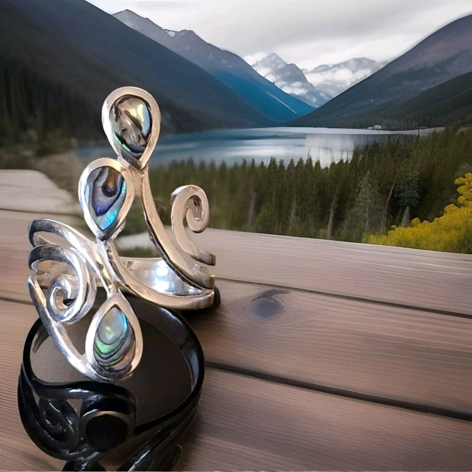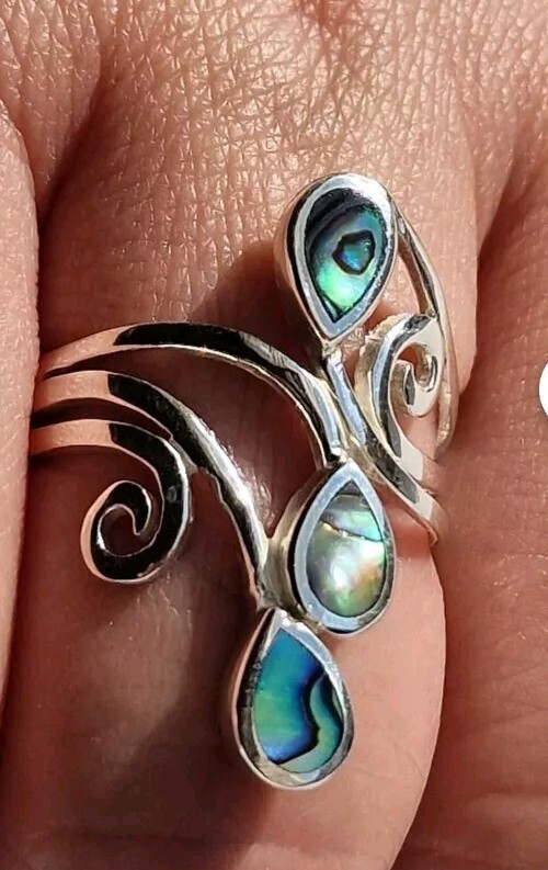 RING 925 Stamp Sterling Silver Abalone Ring