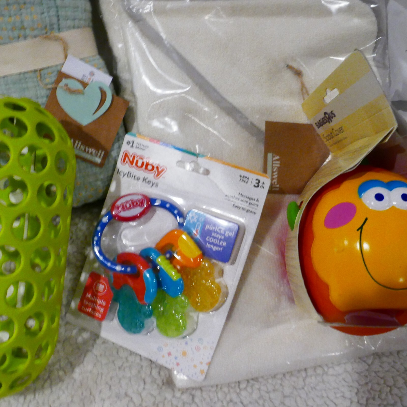 Baby Gift Set Lot Spout Cover, Bottle Cage, Keys Teether, Blanket, Towels Shower