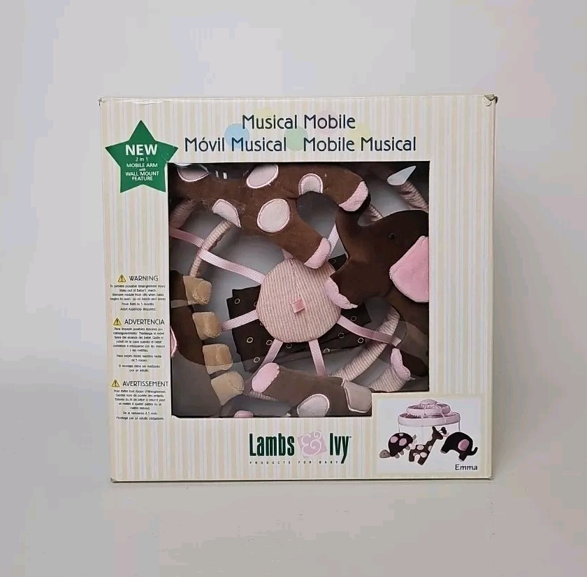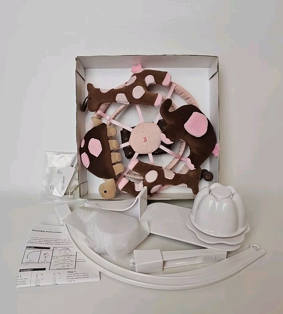 Lambs Ivy Musical Mobile - Emma - Brown Pink Animals Elephant Giraffe Turtle