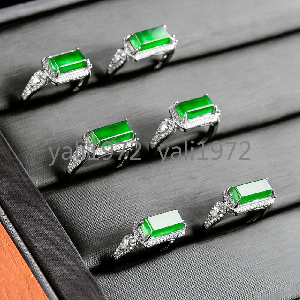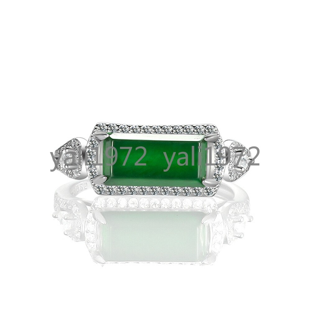 как выглядит Certified Grade A Natural Green Burma Jade jadeite S925 Silver Fashion Ring фото