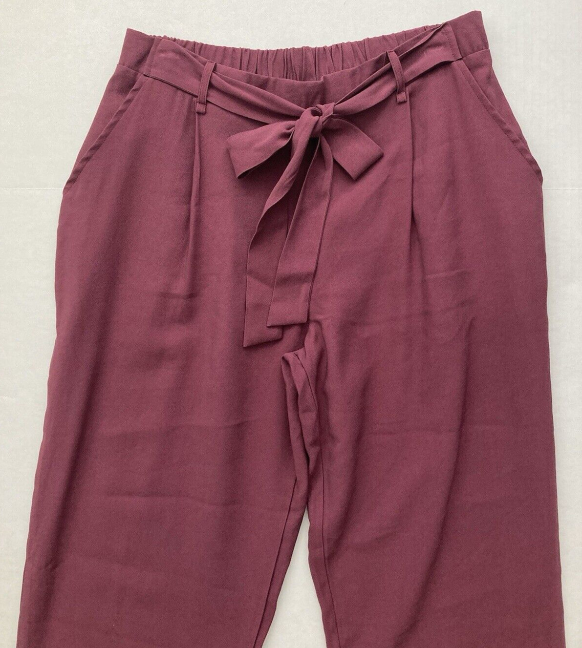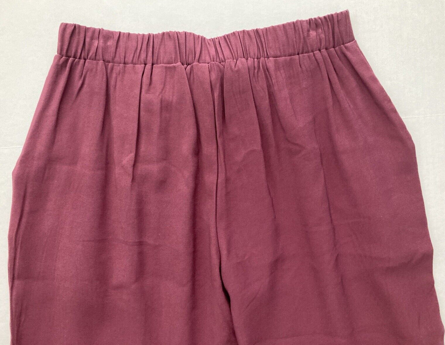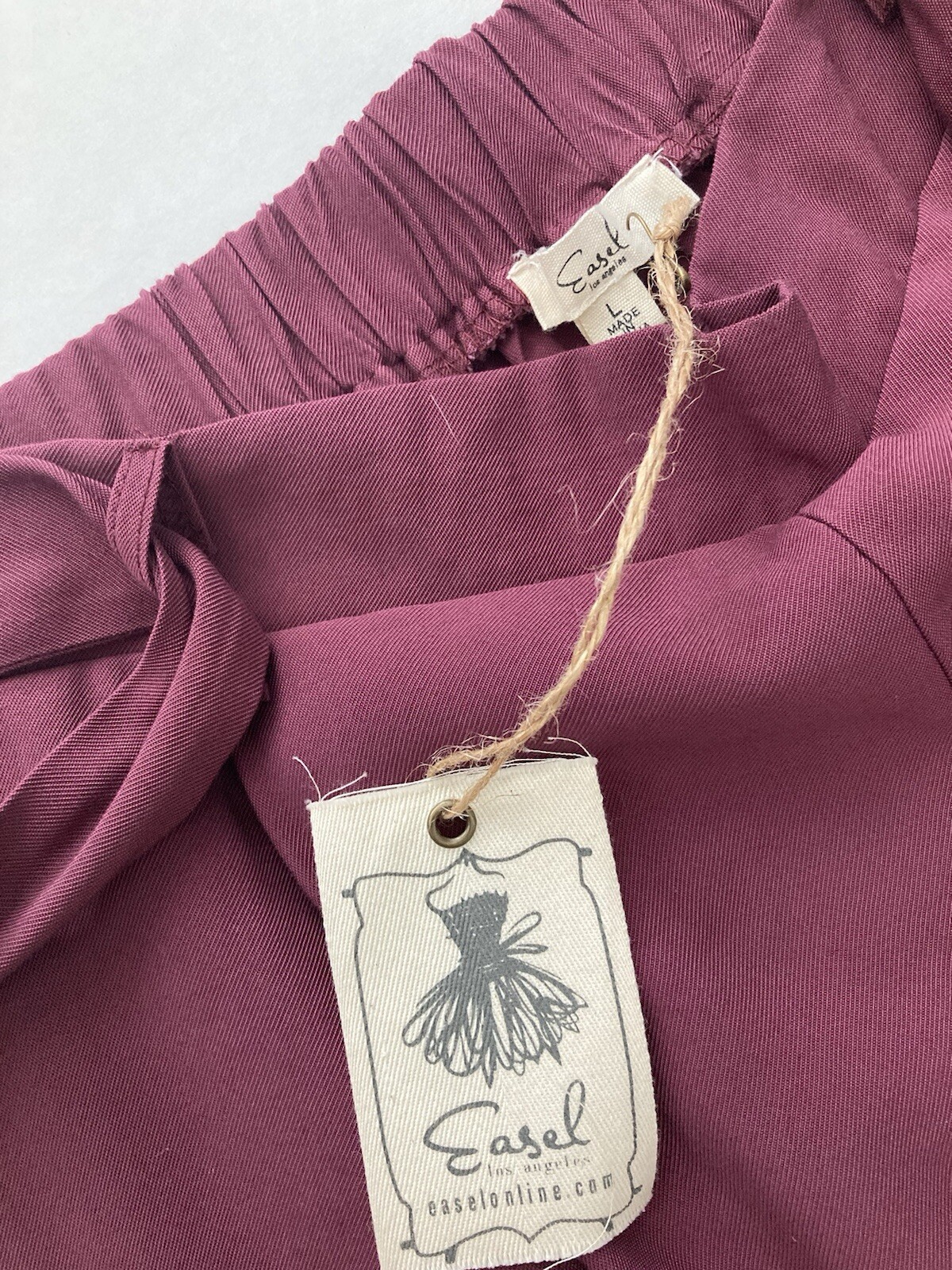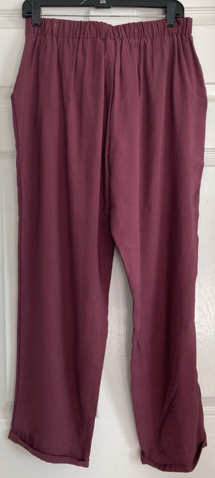 Easel Los Angeles Pant L Plum Waist Tie Pull On Elastic Cuffed Pockets Cotton