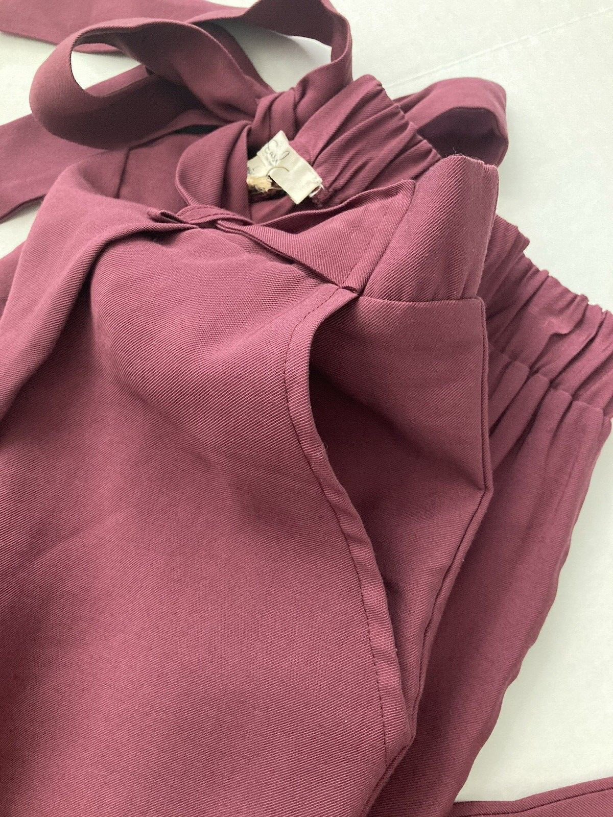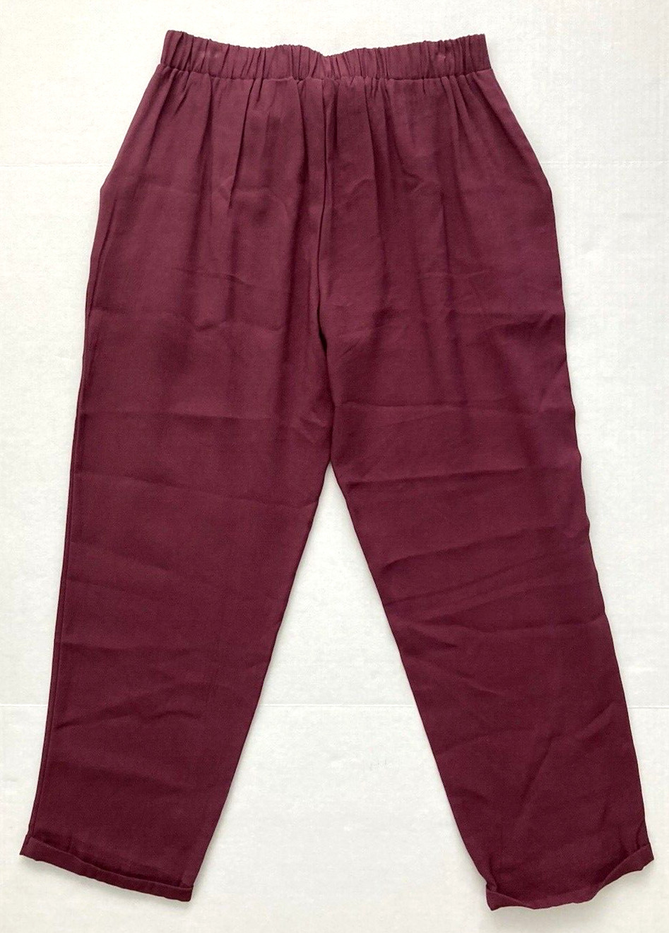 как выглядит Easel Los Angeles Pant L Plum Waist Tie Pull On Elastic Cuffed Pockets Cotton фото