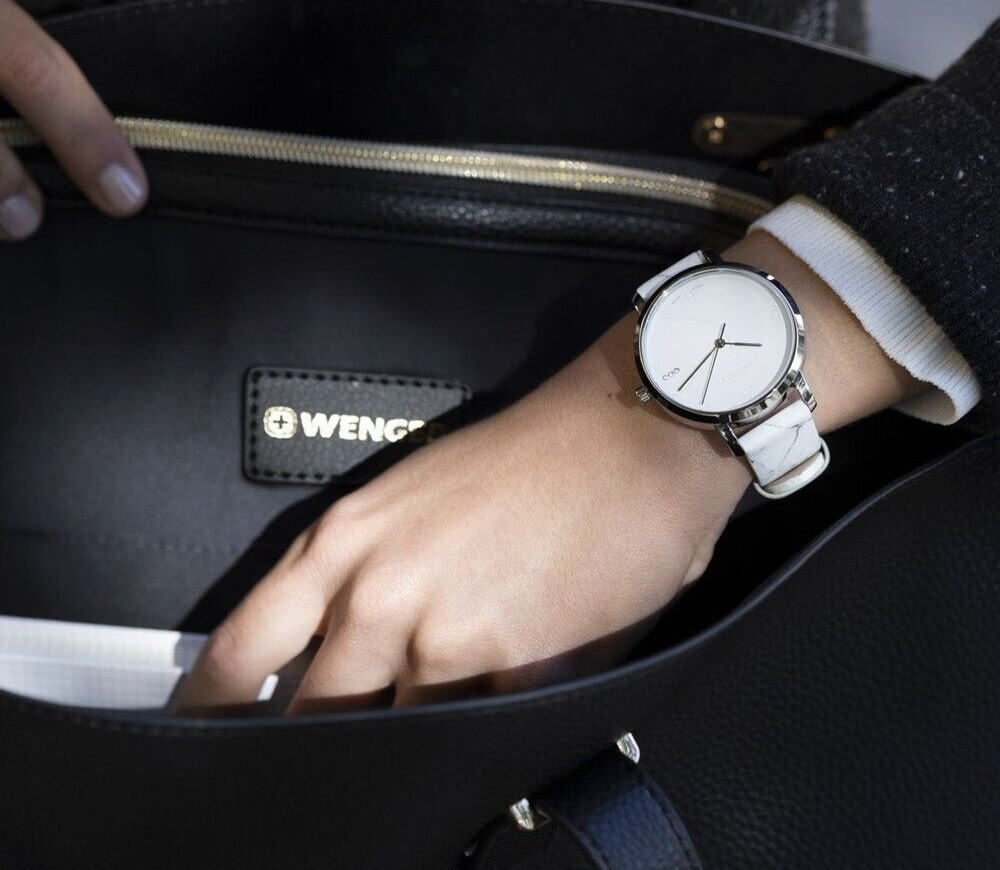 как выглядит NEW WENGER SWISS ARMY MADE WOMENS WATCH WHITE DIAL CRYSTALS LEATHER QUARTZ 109 фото