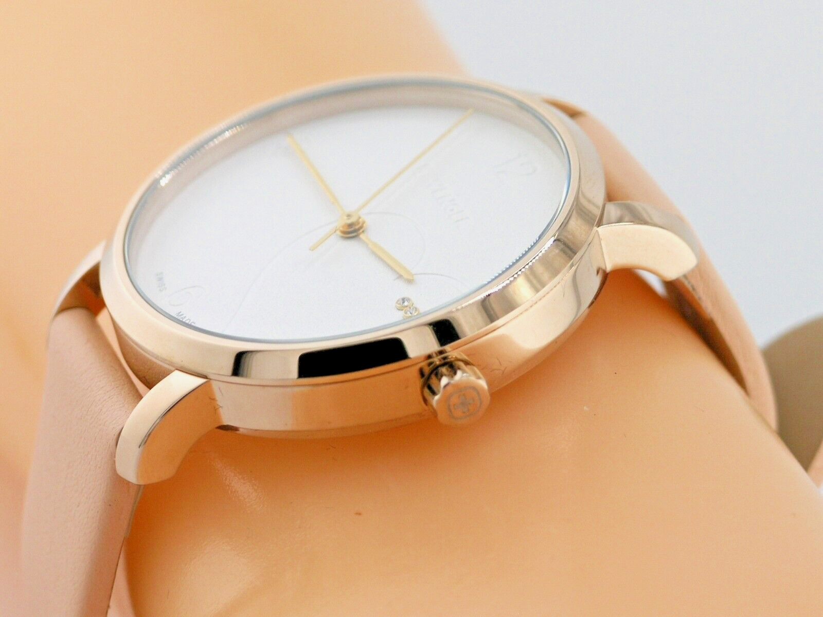 как выглядит NEW WENGER SWISS ARMY MADE WOMENS WATCH WHITE DIAL CRYSTALS PINK LEATHER GOLD110 фото