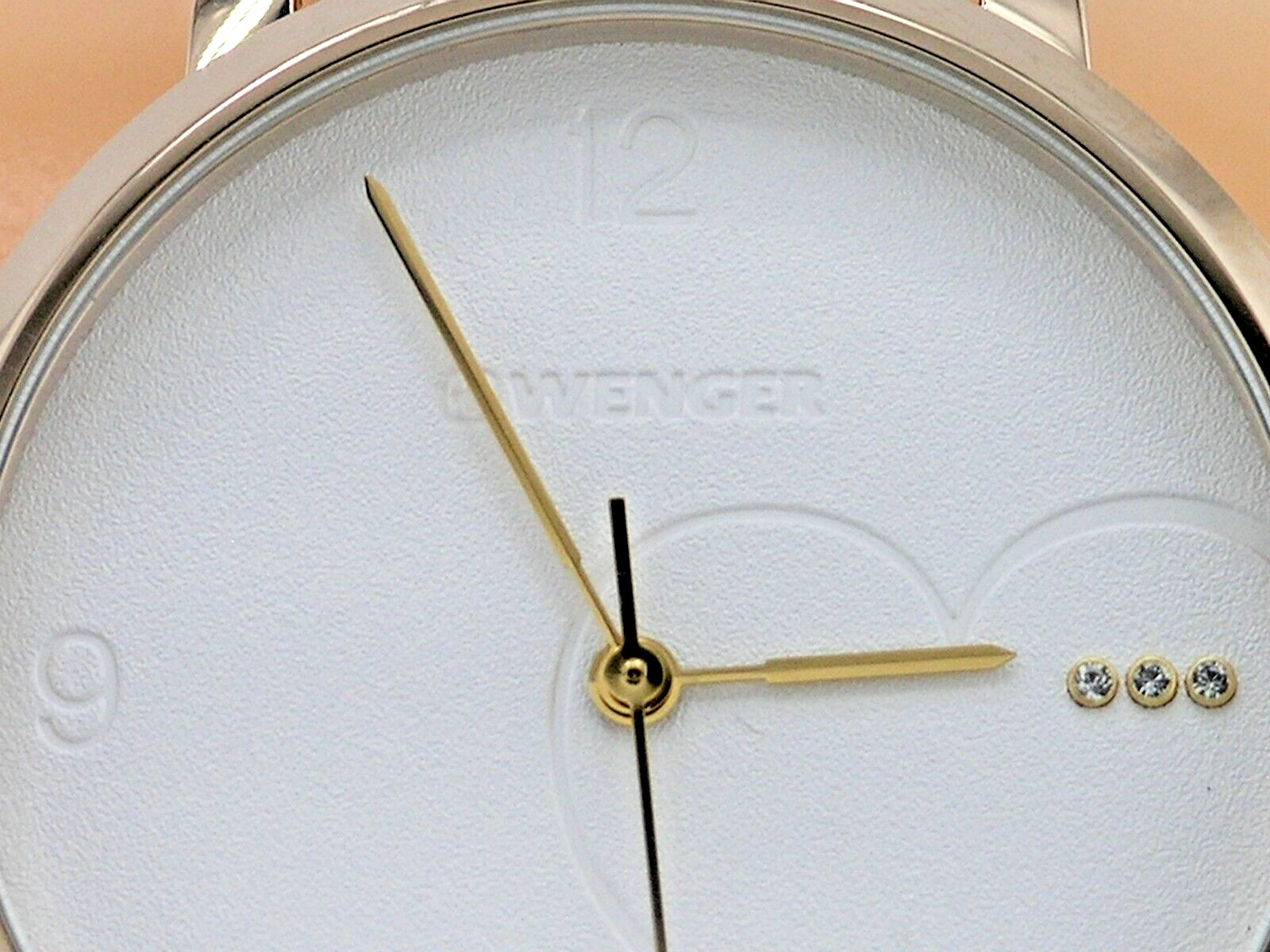 NEW WENGER SWISS ARMY MADE WOMENS WATCH WHITE DIAL CRYSTALS PINK LEATHER GOLD110