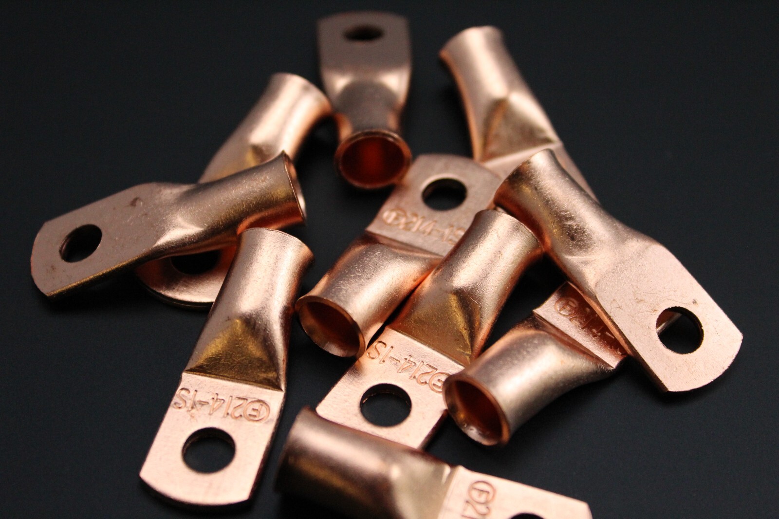 как выглядит 2 GAUGE COPPER 1/4 RING 2 PK CRIMP TERMINAL CONNECTOR AWG BATTERY LUG CUR214 фото