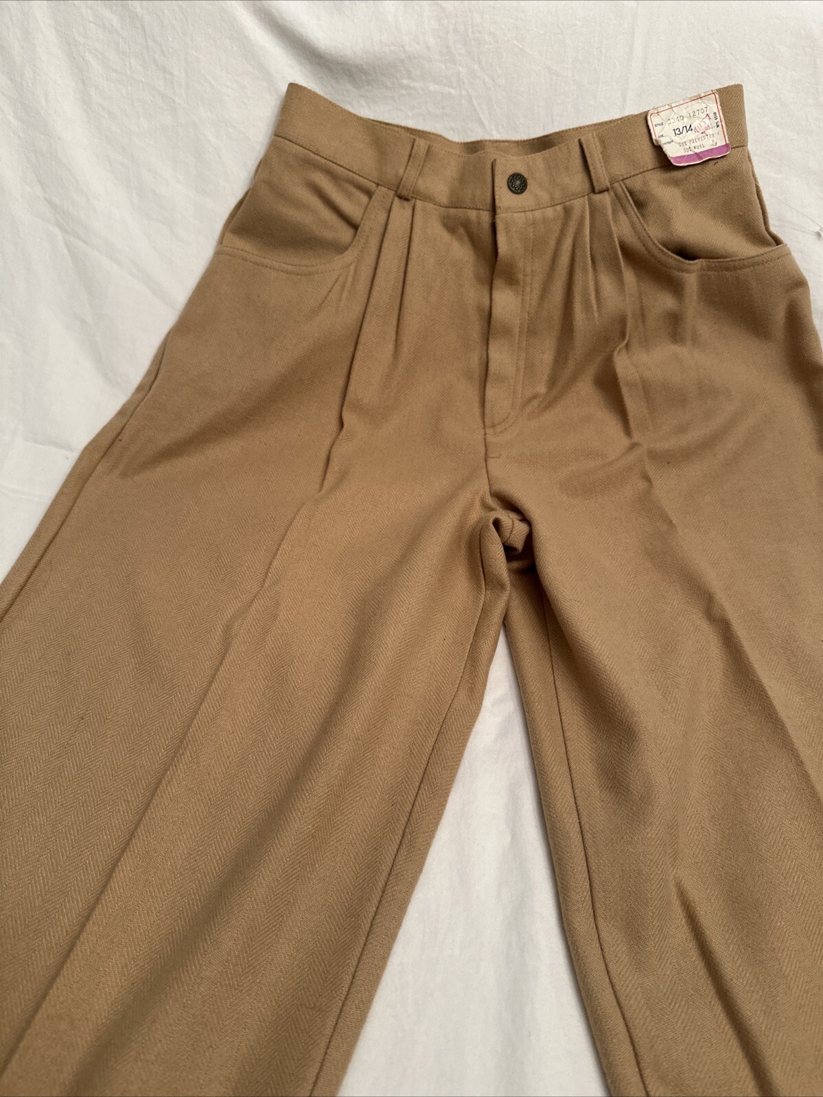 Vintage 60 s Trousers Up Brand Tan Khaki Wool Blend Pants Size 13/14 8/10 Today