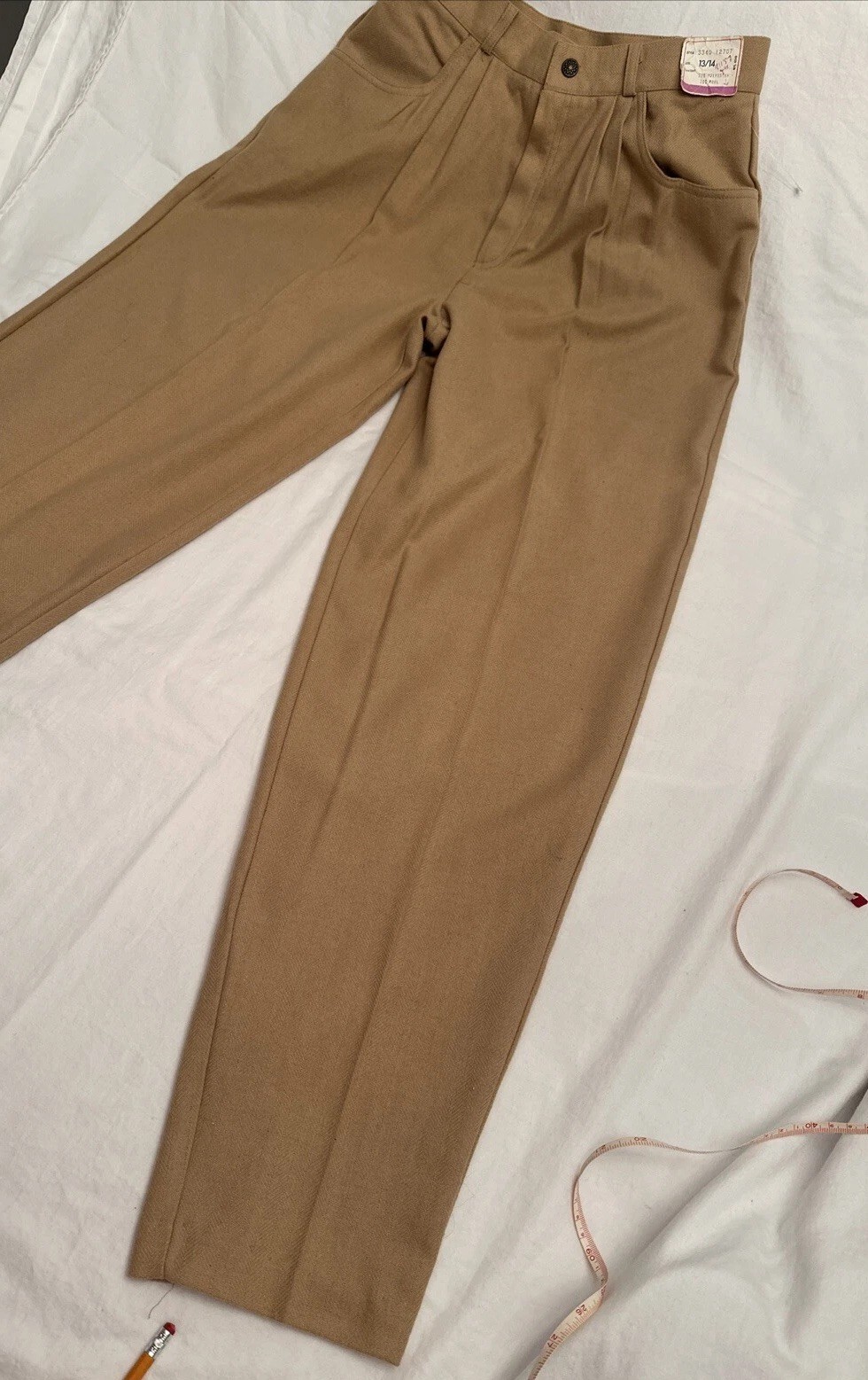 как выглядит Vintage 60 s Trousers Up Brand Tan Khaki Wool Blend Pants Size 13/14 8/10 Today фото