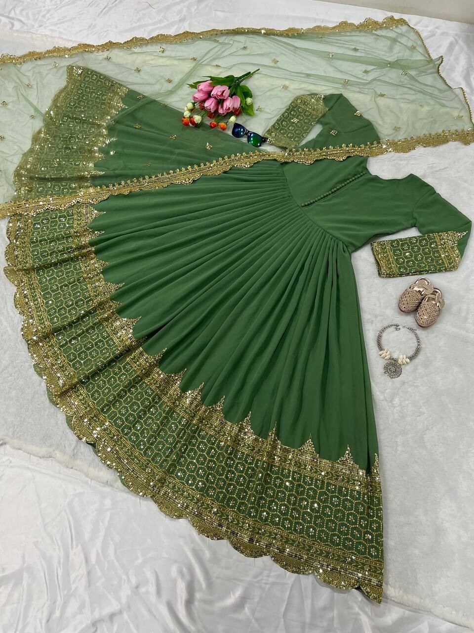 New Latest Heavy Faux Georgette Gown With Net Dupatta For Reception Function