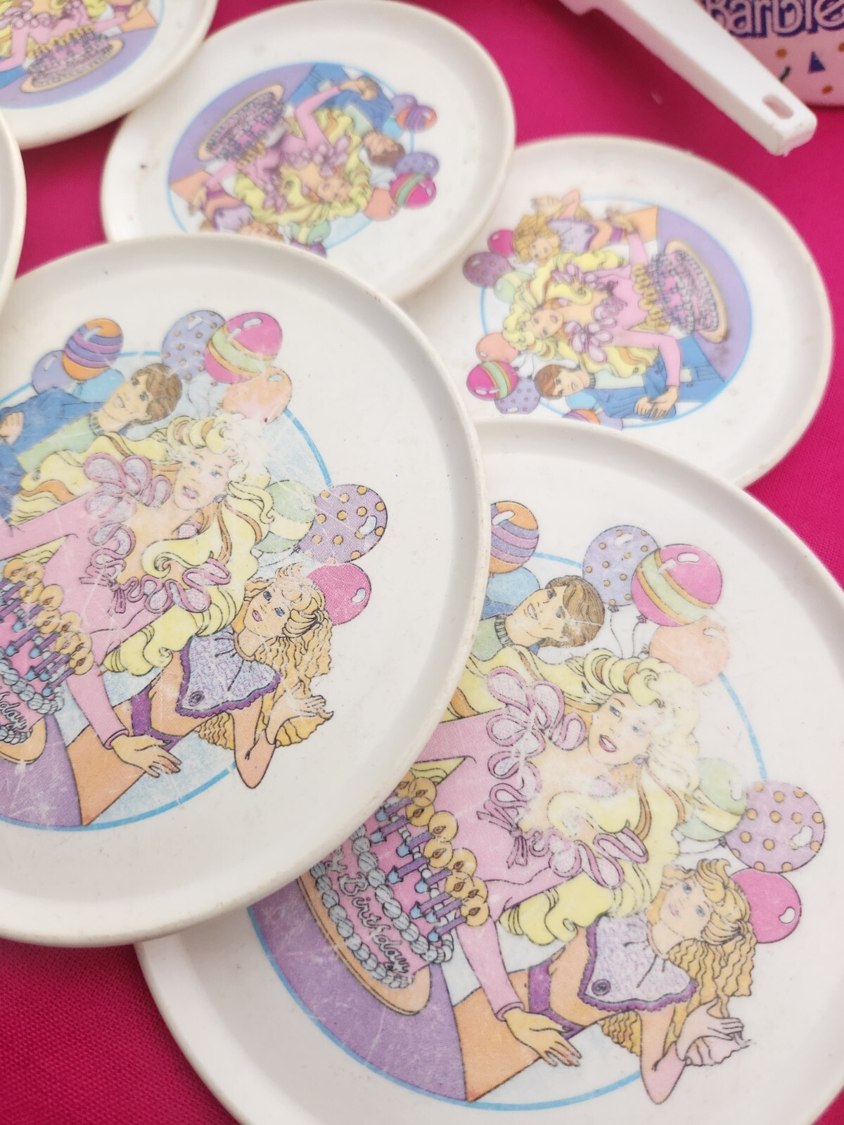 Vtg 80s 90's Barbie Doll Tea Party Cup Plate Plastic Chilton Kids Toy Gift