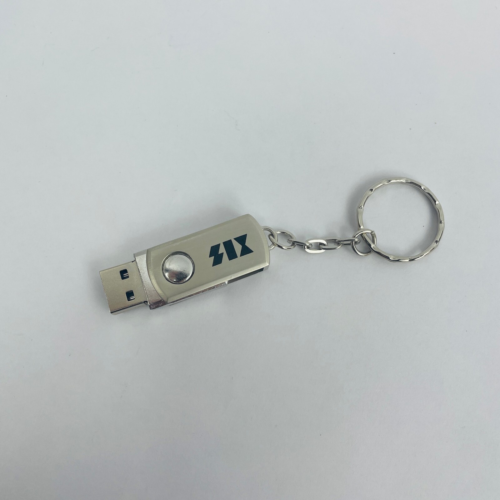 SIX 64GB Silver Blank USB Flash Drives with Rotating Protective Cover