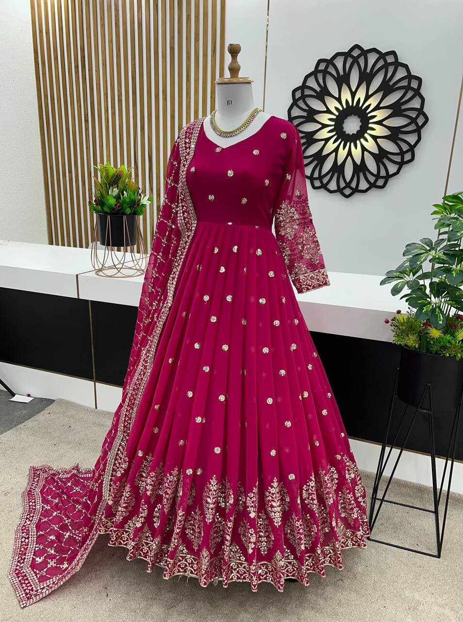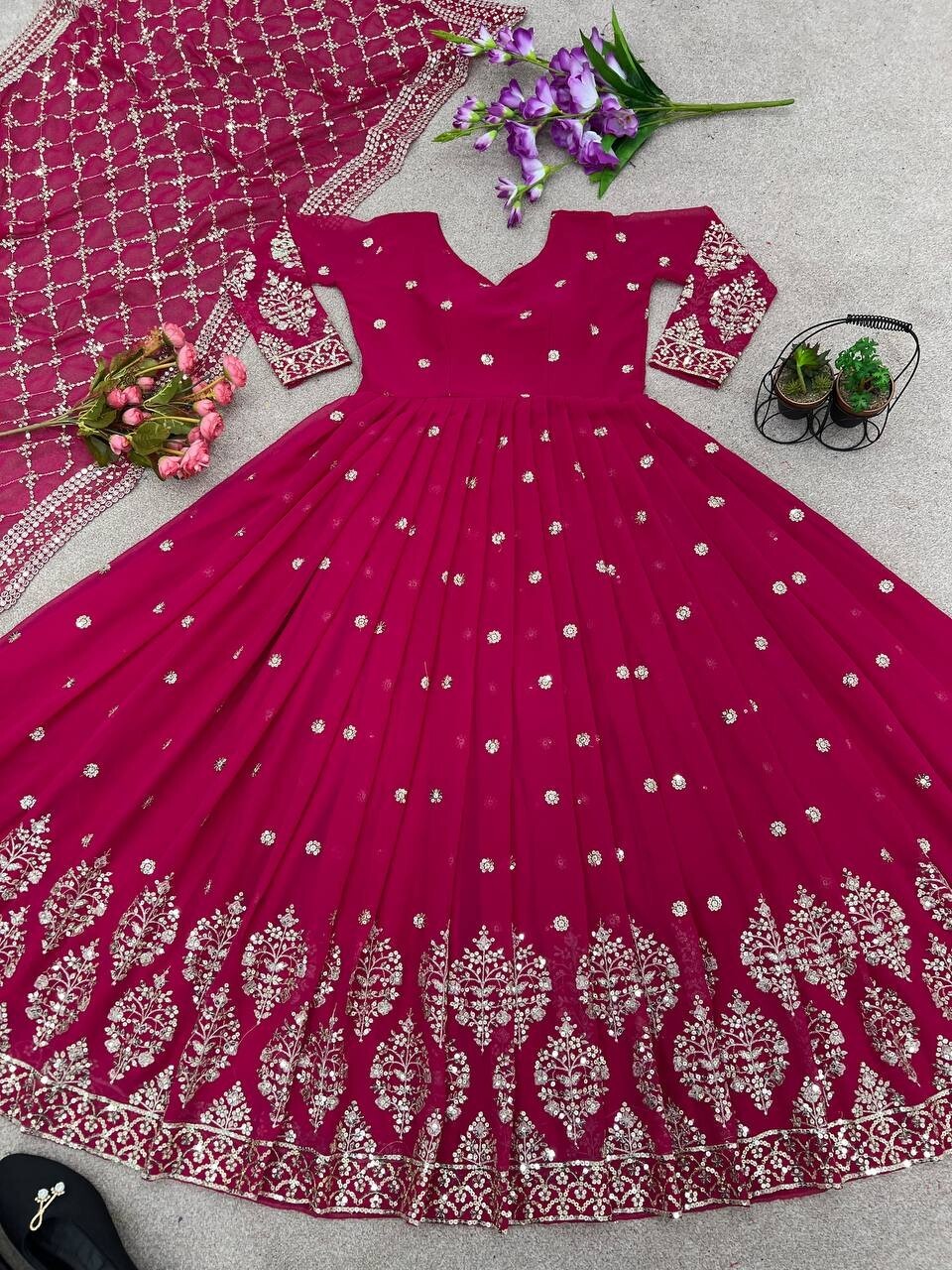 NEW FANCY DESIGNER LOOK RANI PINK GOWN WITH DESIGNER DUPATTA FOR RECEPTION WEAR