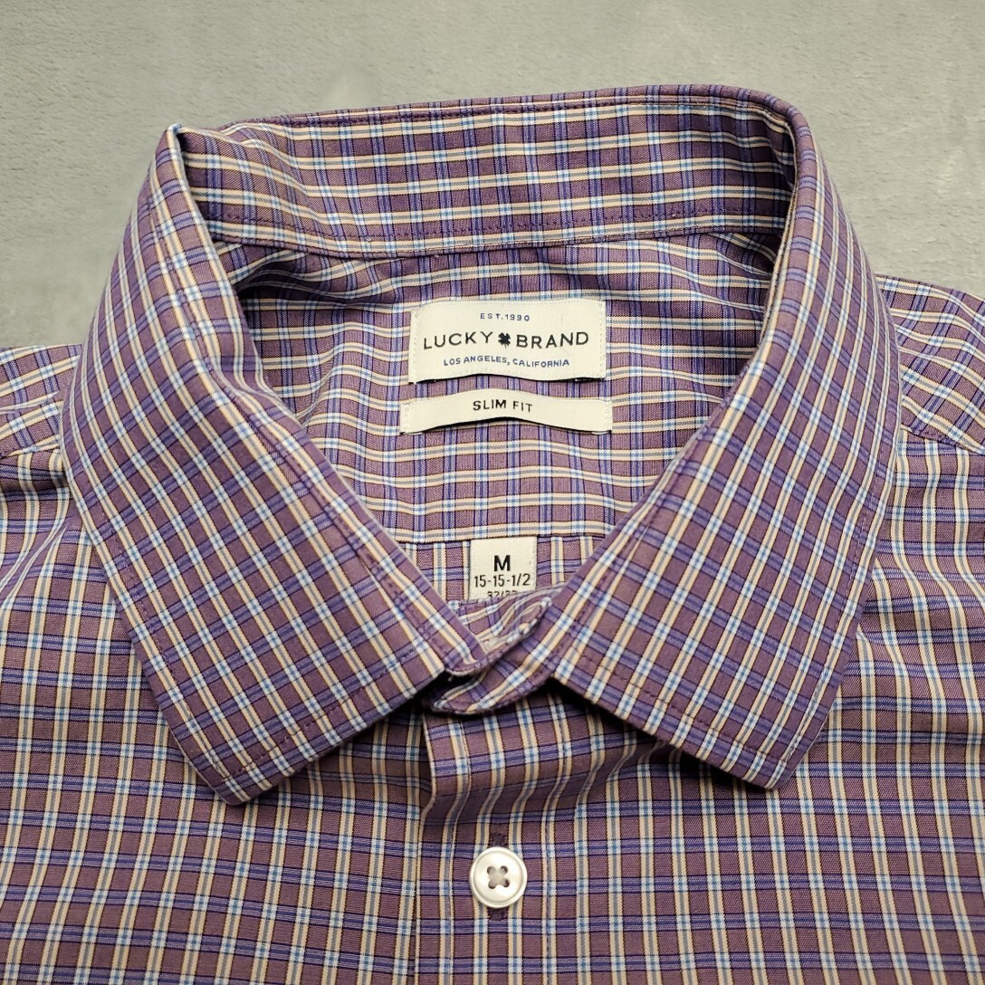 как выглядит Lucky Brand Shirt Mens Medium Purple Plaid Long Sleeve Slim Casual Dress Classic фото