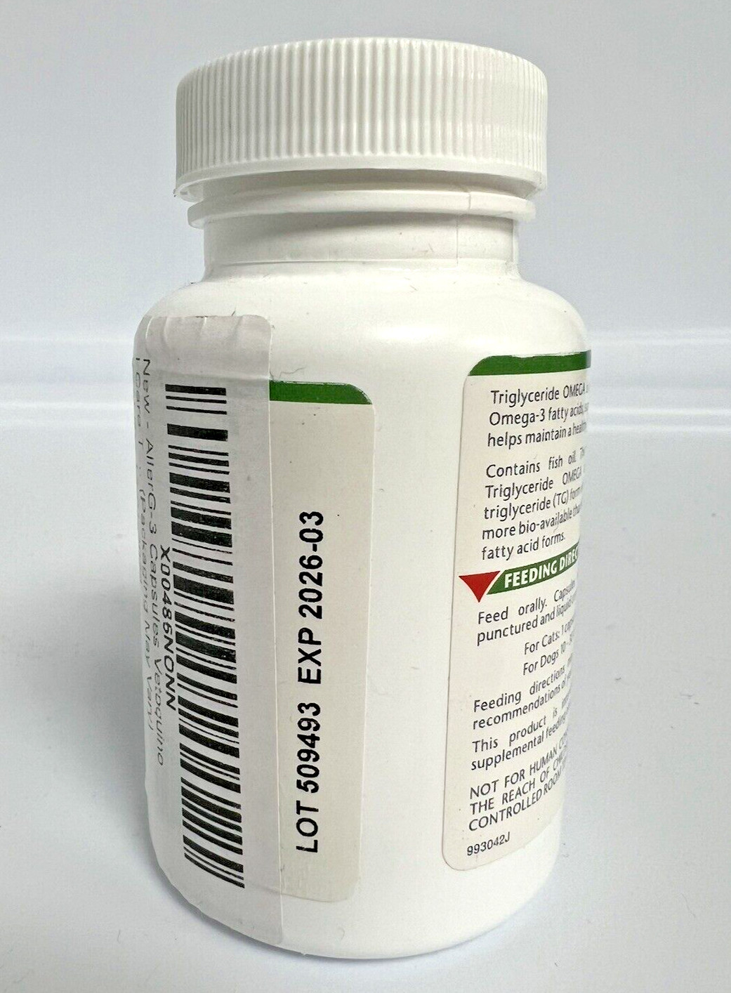 Vetoquinol Triglyceride OMEGA for Cats Small Dogs 10-30lbs 60 Caps Exp 3/26