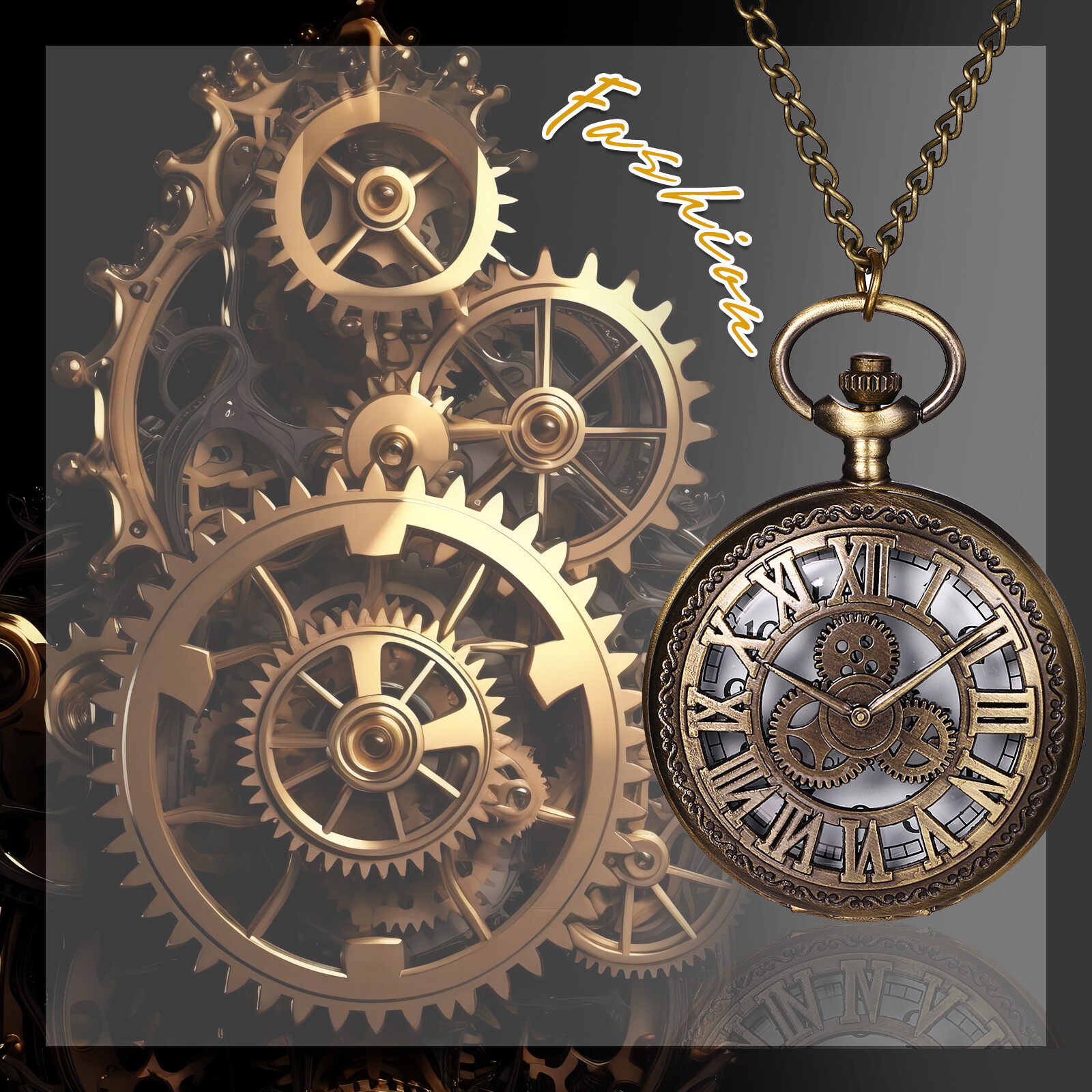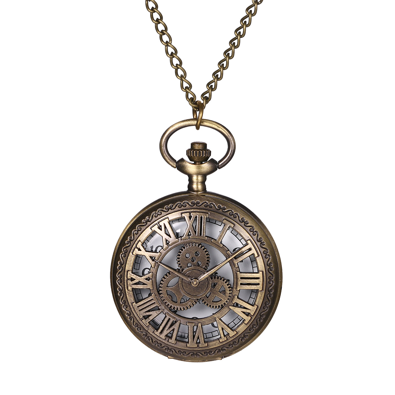 Men Women Hallow Gear Quartz Pocket Watch Retro Steampunk Analog Necklace Chain