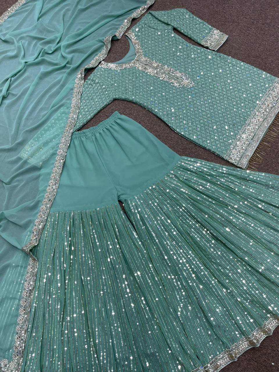 LAUNCHING FAUX GEORGETTE KURTA PALAZZO WITH DUPATTA FOR INDIAN WEDDING