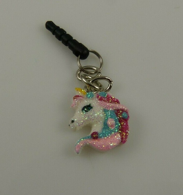 Unicorn head fuzzy glitte charm cell phone or fits Ipad charm ear cap dust plug
