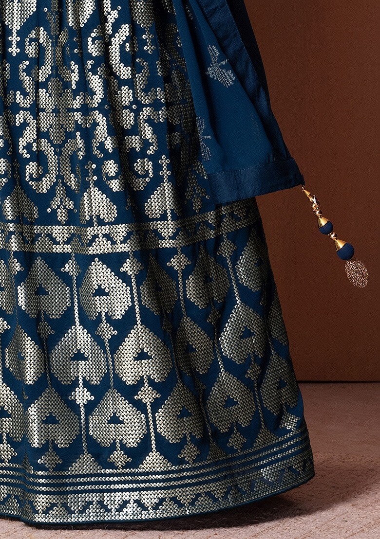 Beautiful Georgette Blue Lehenga Choli With Dupatta For Reception Wear