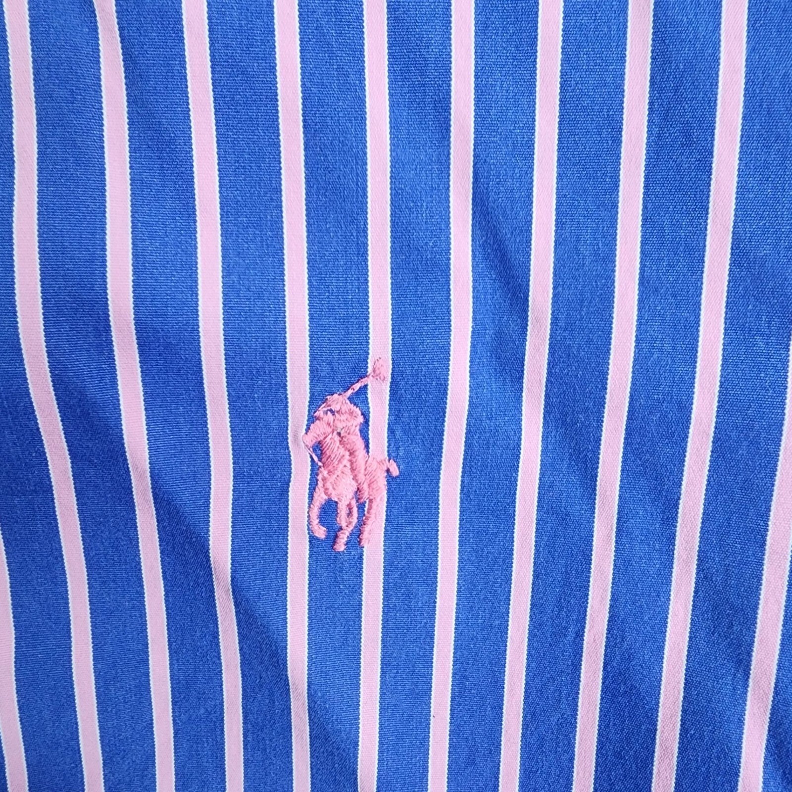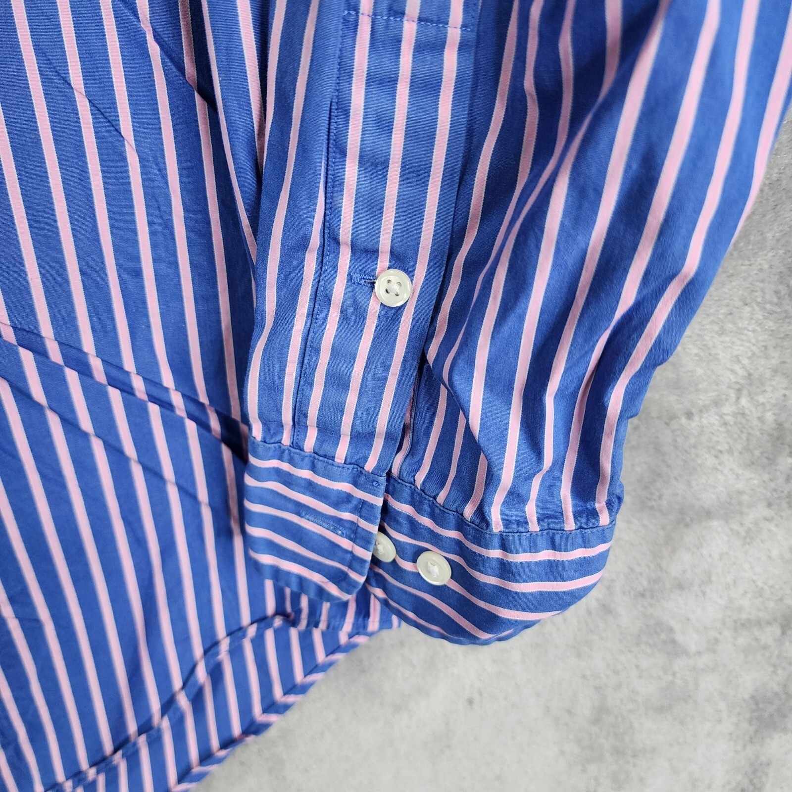 как выглядит Mens Ralph Lauren Blue Pink Striped Dress Shirt Button Down Classic Fit Size 16 фото