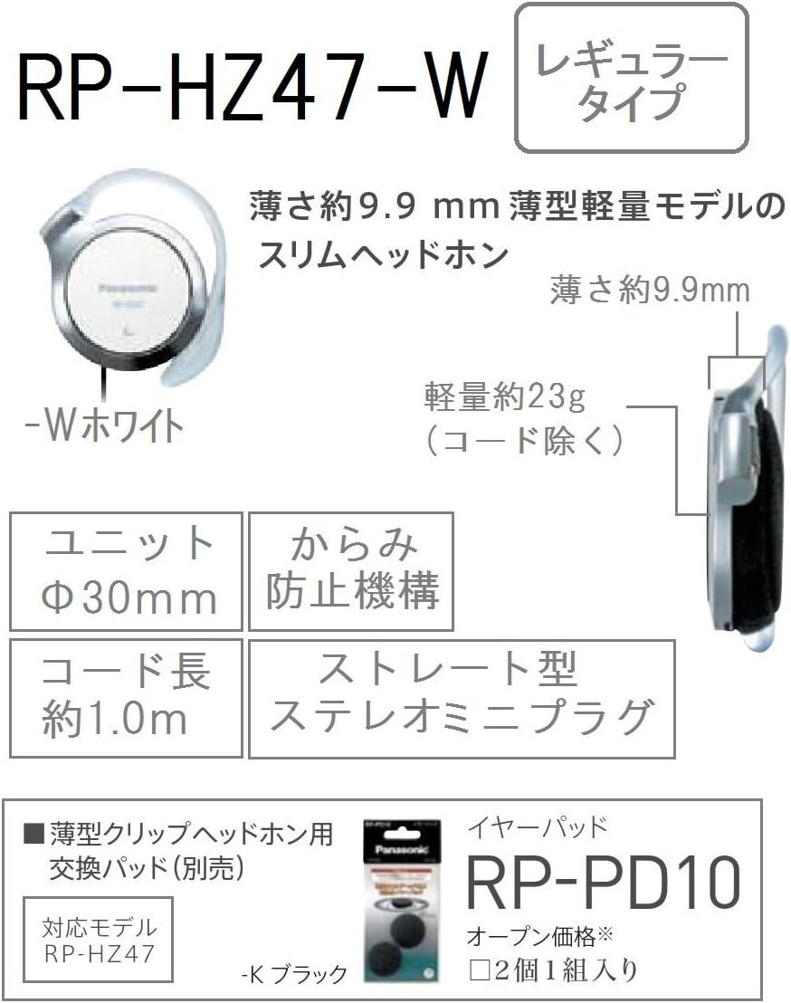 Panasonic clip headphone White RP-HZ47-W