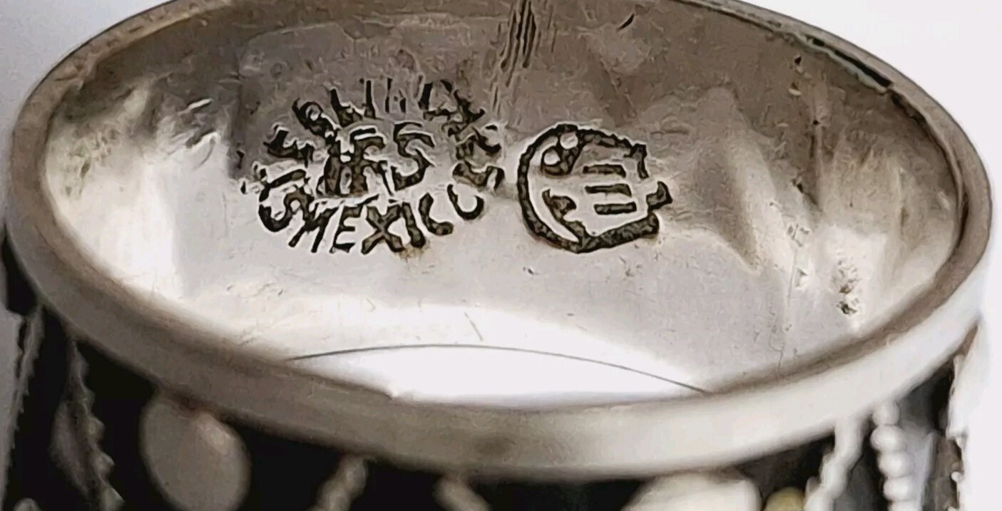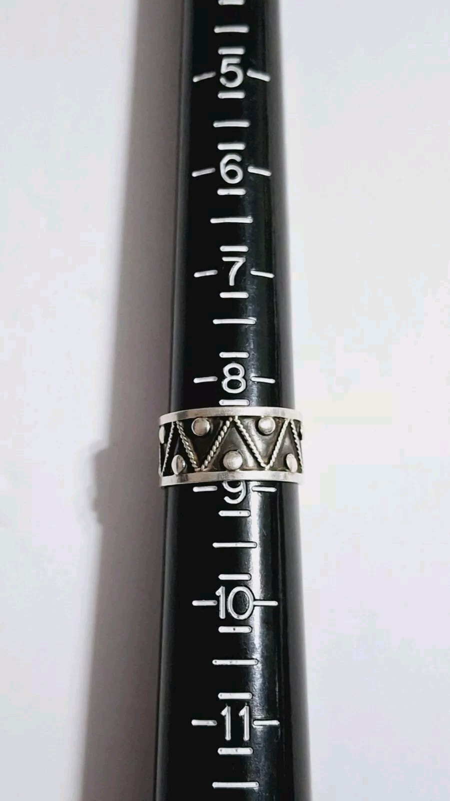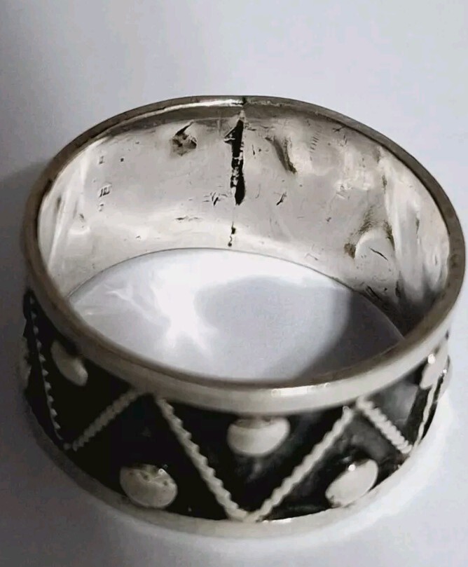 как выглядит Mexico Sterling Silver Zig Zag Triangle Dot Pattern Band Ring Size 8.75 3.5g фото