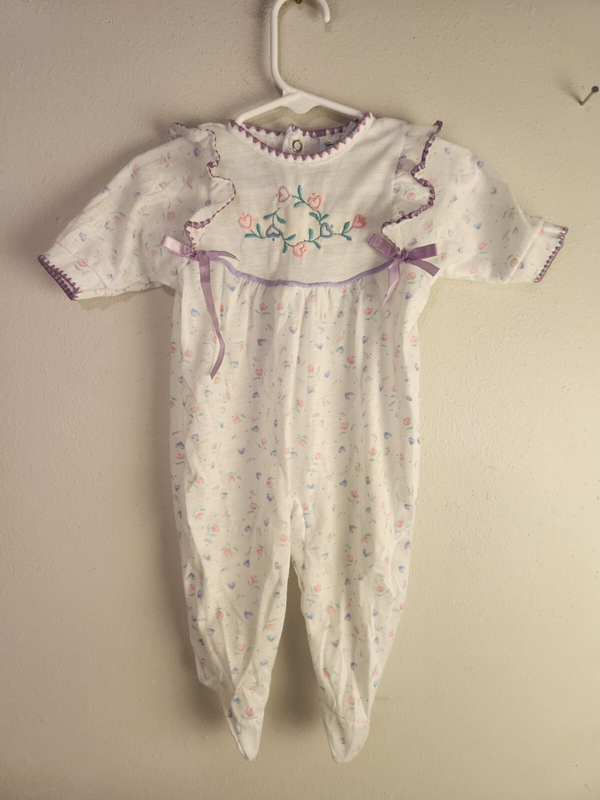 Vtg Dr Denton Baby Girls Multicolor Floral One Piece Pajamas M Lot of 2 6-2