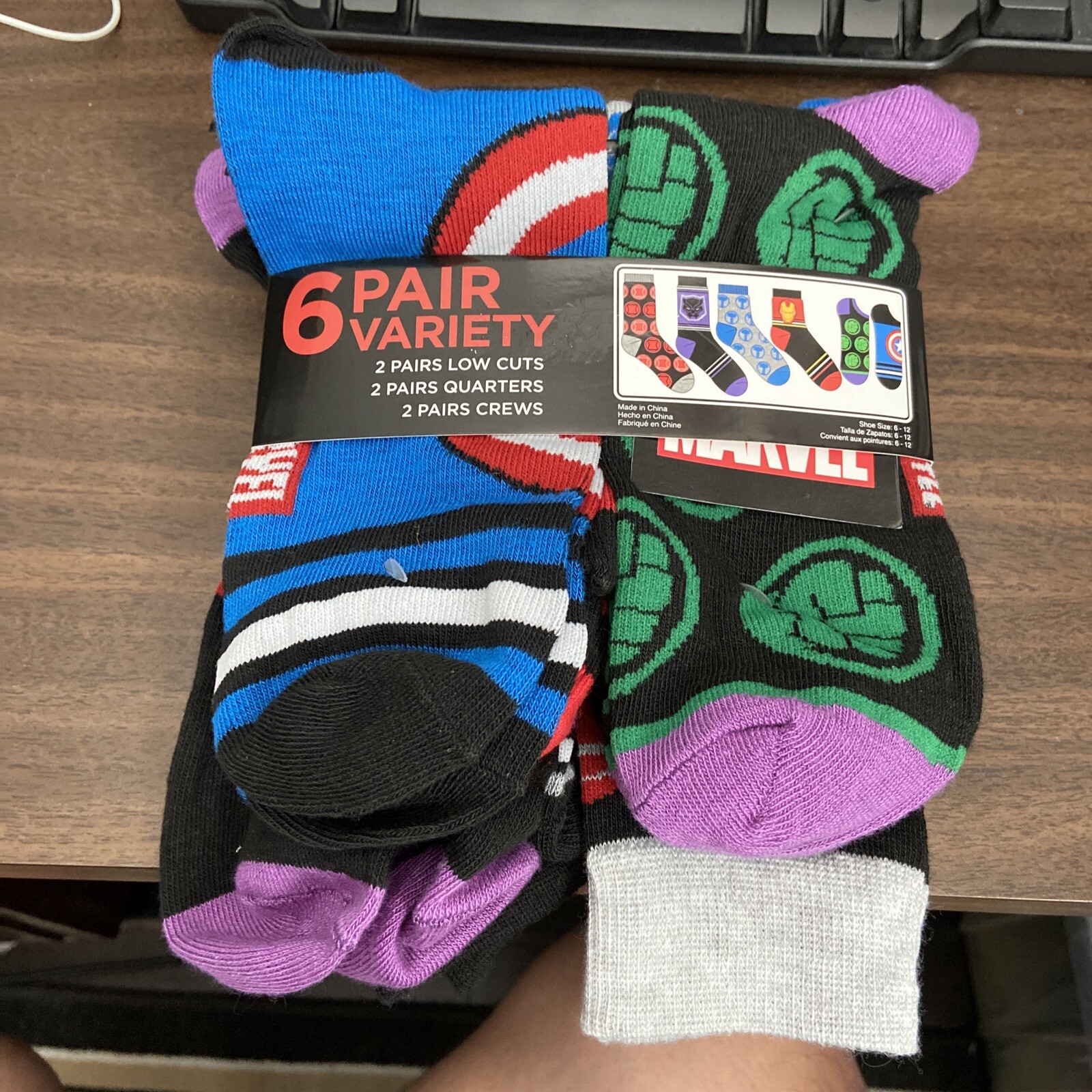как выглядит DISNEY MARVEL 6 PACK VARIETY SOCKS NIB IRONMAN HULK HAWKEYE BLACK WIDOW PANTHER фото