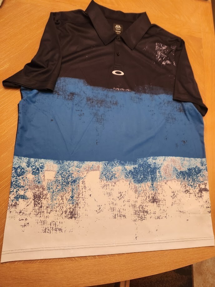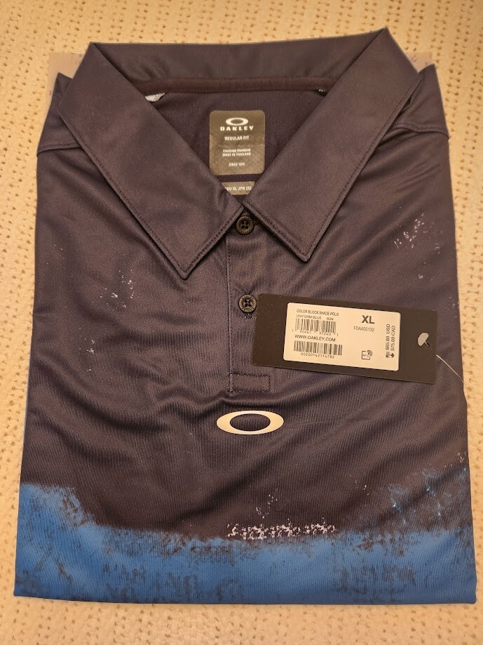 NWT OAKLEY- BLOCK SHADE Polo XL/BLUE-Blk Color 49 off 65.00 MSRP - 33.00