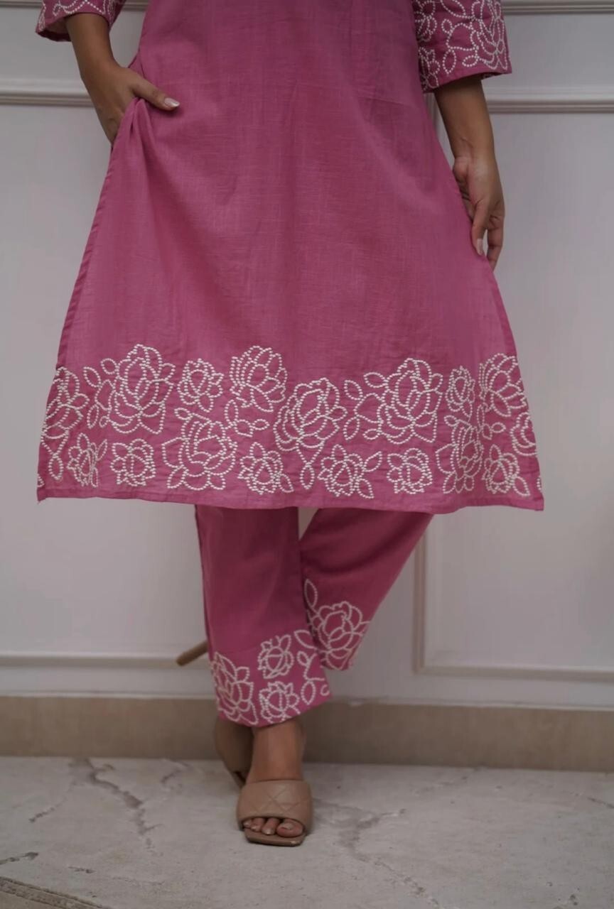 Women Designer Cotton Tunic Kurti Set Indian Pakistani Kurta Pant Set Dress