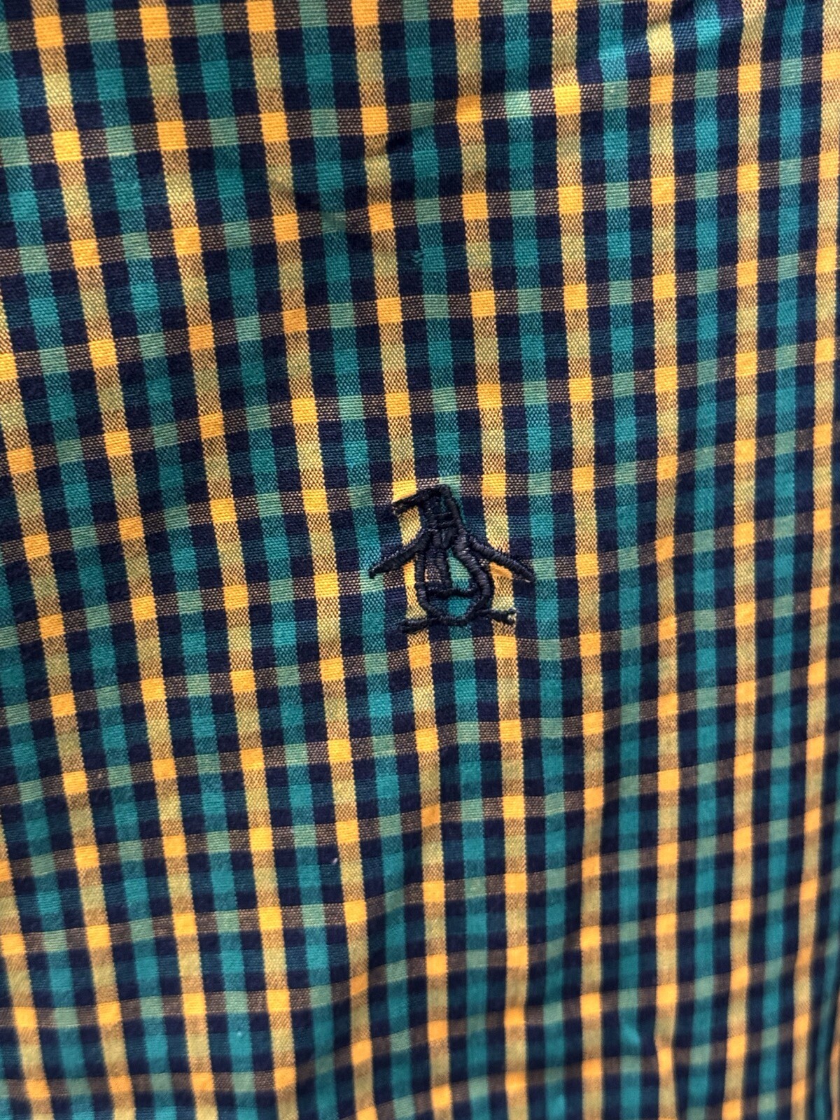 как выглядит Penguin Sea Green Plaid LONG SLEEVE SHIRT Medium M 15.5 x 33/34 фото
