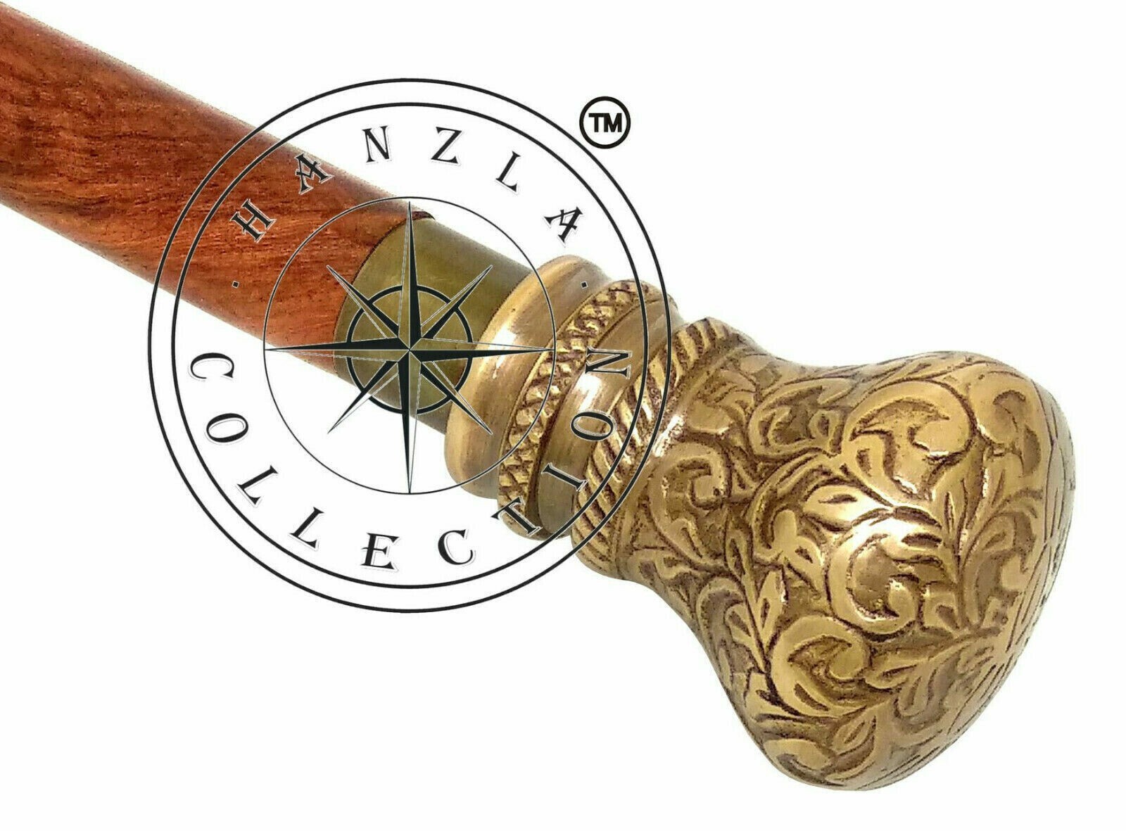 Antique Style Brass Solid Knob Wooden Walking Stick Vintage Cane Handmade Gift