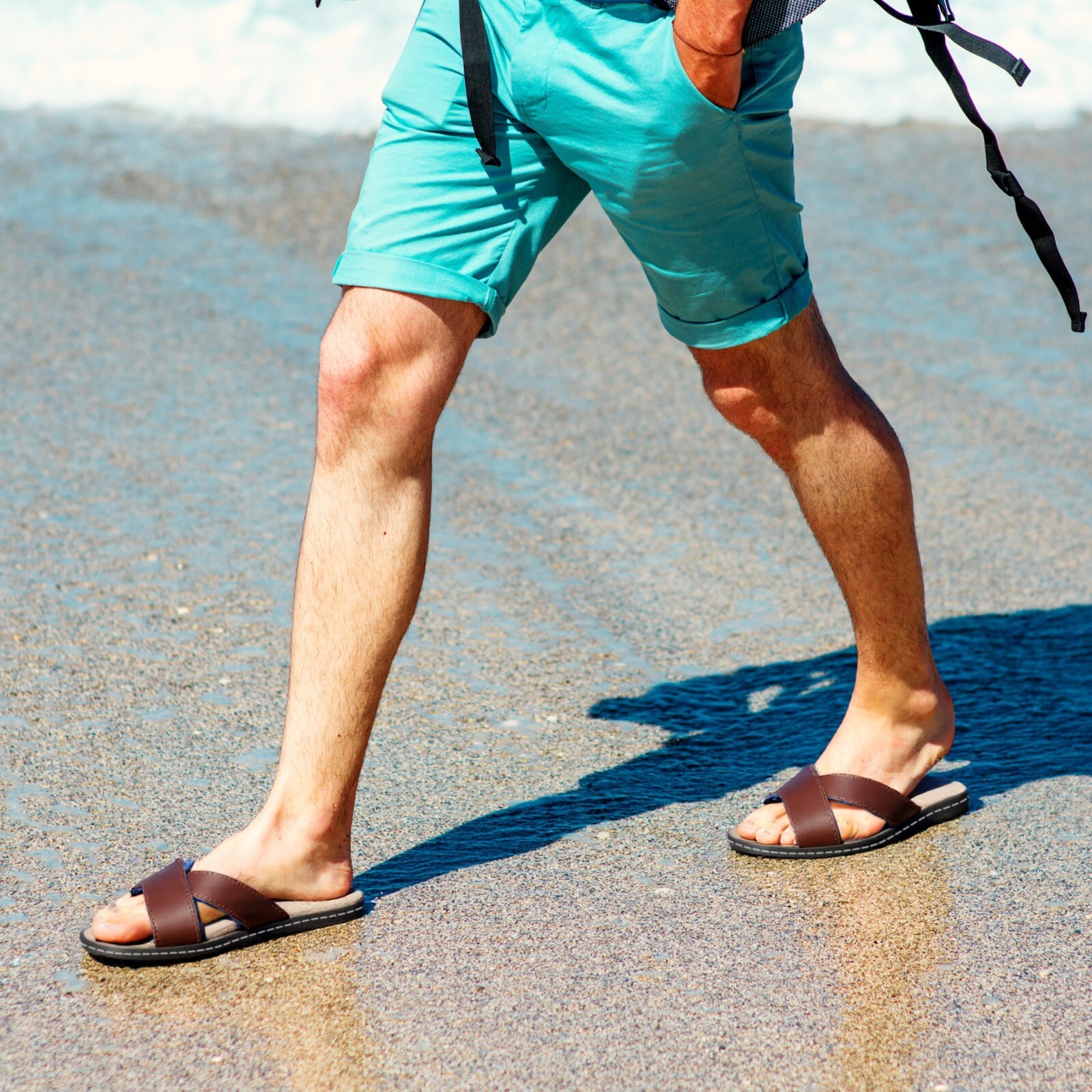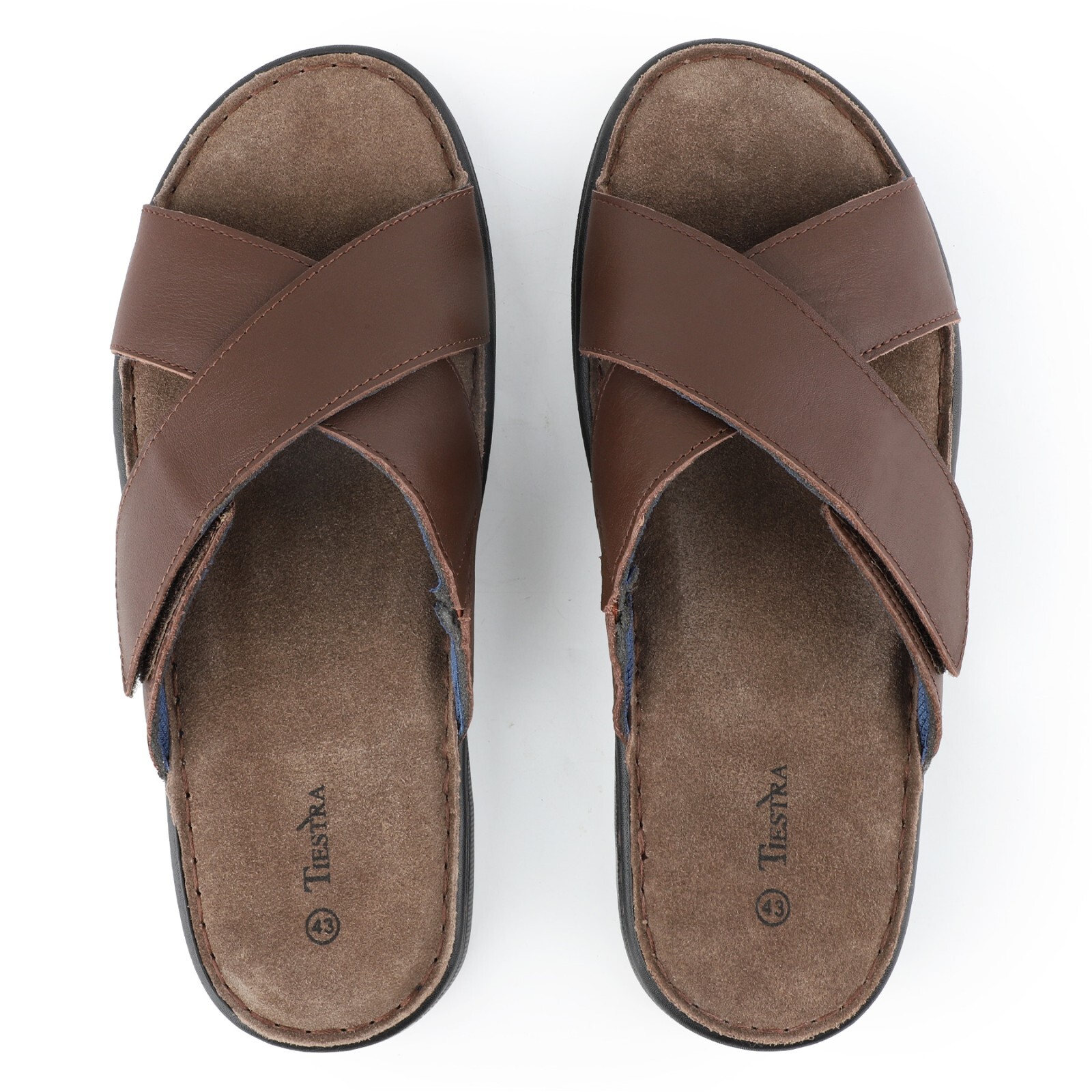 Tiestra Mens Napa Leather Slides Sandals Soft Cushion Memory Foam Dress Sandals