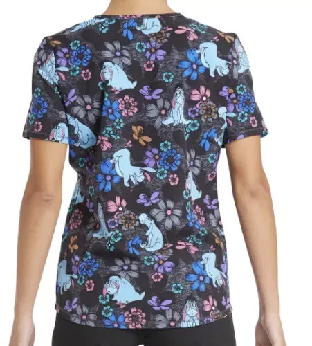 DISNEY Eeyore Women's V Neck Stretch Pockets Scrub Top Color Black Free Ship