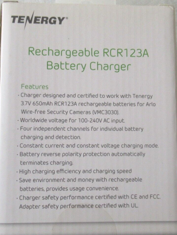 Arlo Certified Tenergy Charger Only for 3.7V RCR123A Li-ion Rechargeable Battery
