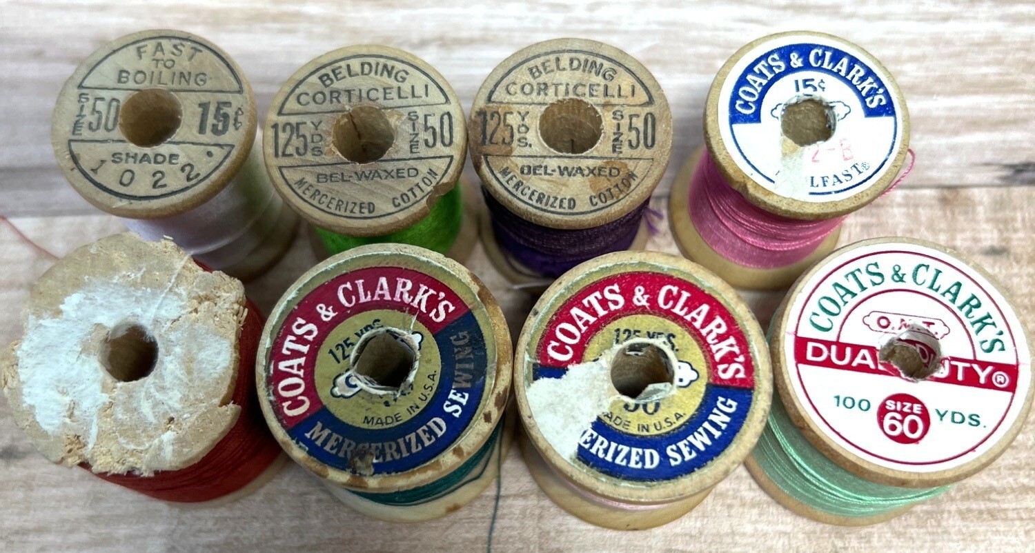 8 Vintage Coats Clarks And Belding Corticelli Sewing Thread On Wooden Spools A