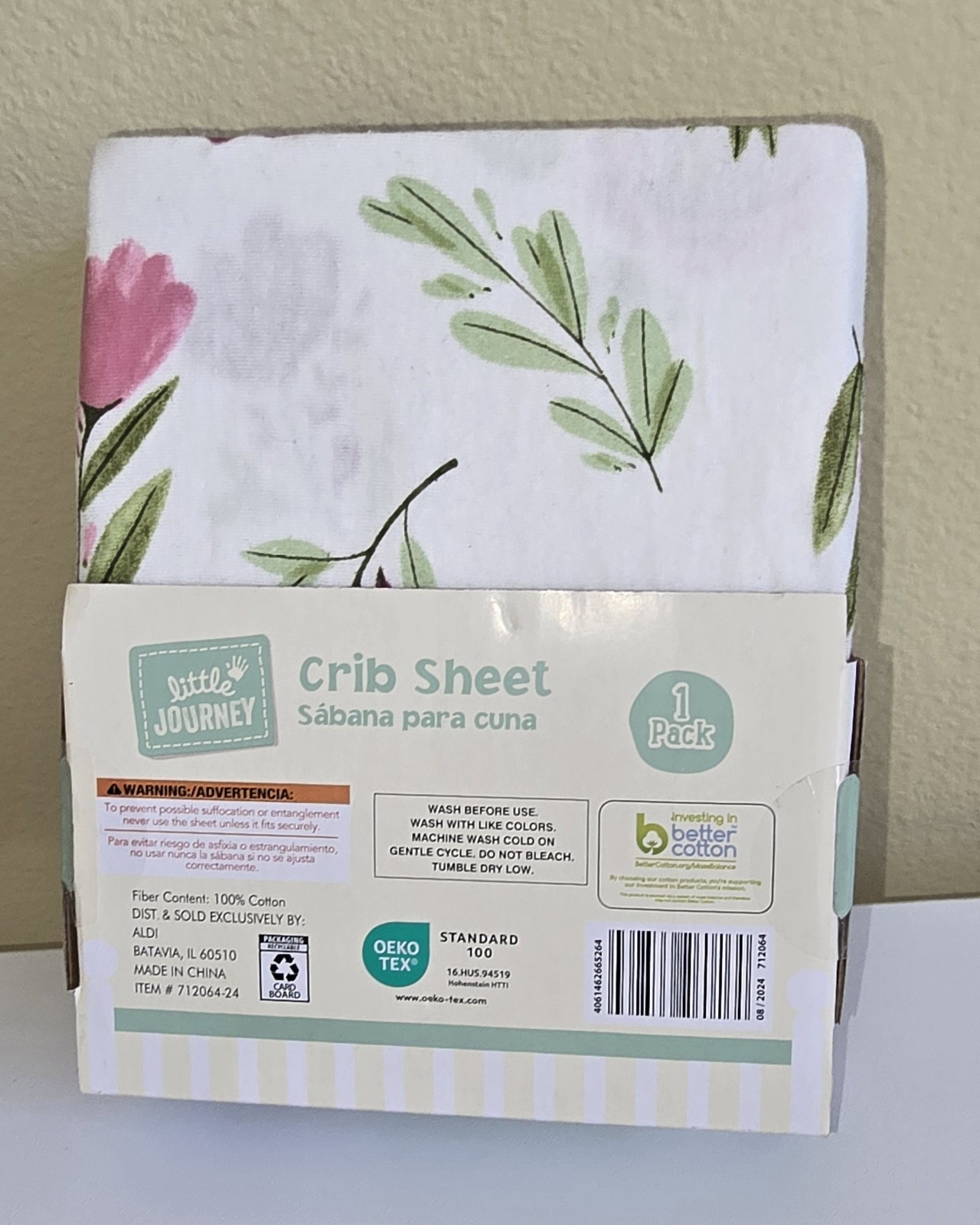 как выглядит Crib Sheets Fitted Baby Bed Pink Flowers Green Leafs New Organic Cotton 52 X 28 фото