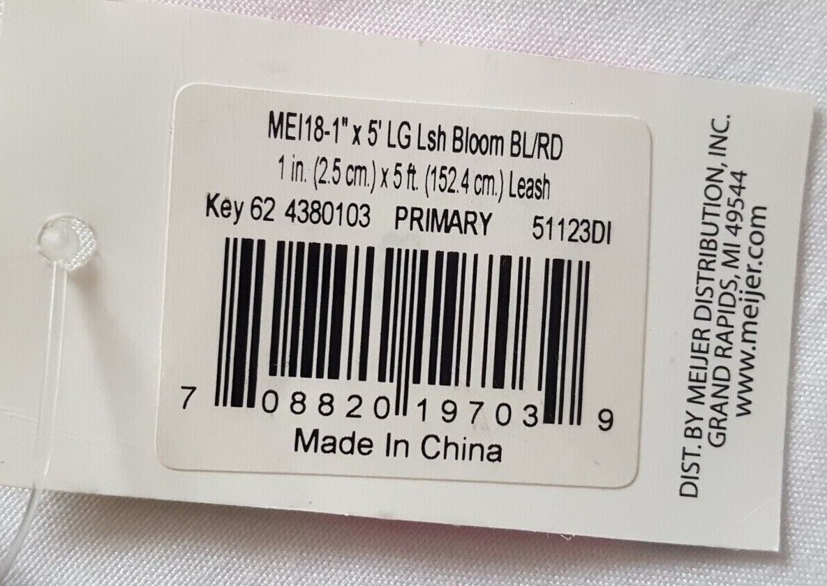 Leash For Dogs Bloom Blue Red Size Large 5 Foot Long 1 Inch Wide