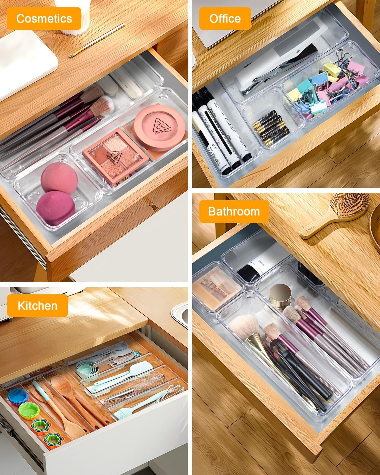 25 PCS Clear Plastic Drawer Organizers and Dividers 4 Sizes Stackable Drawer ...