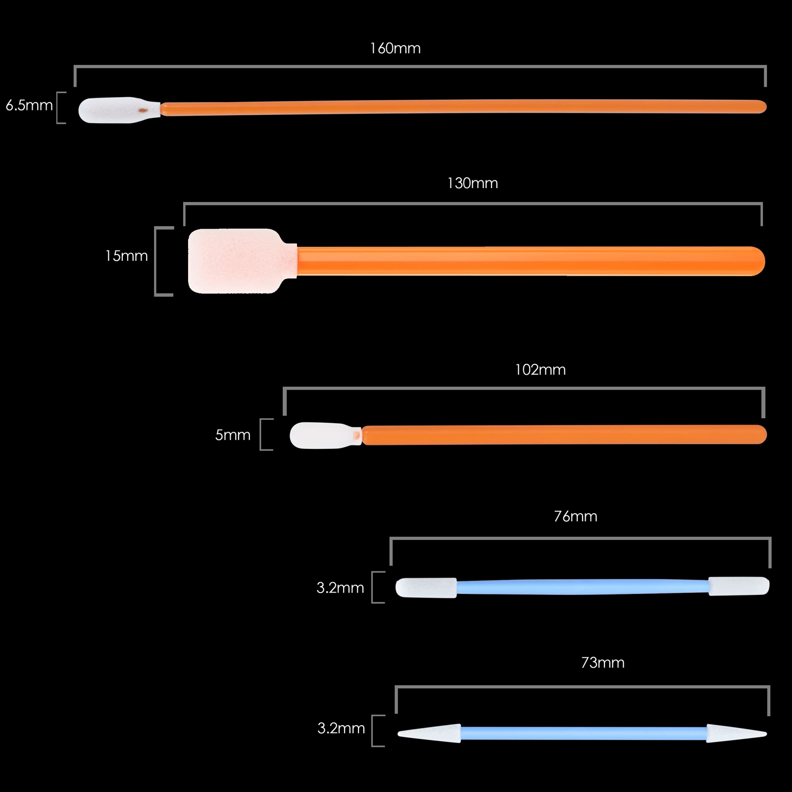Foam Tip Cleaning Swab Kit 5 Types 100 Pack Cleanroom Sponge Stick Foam Swab ...