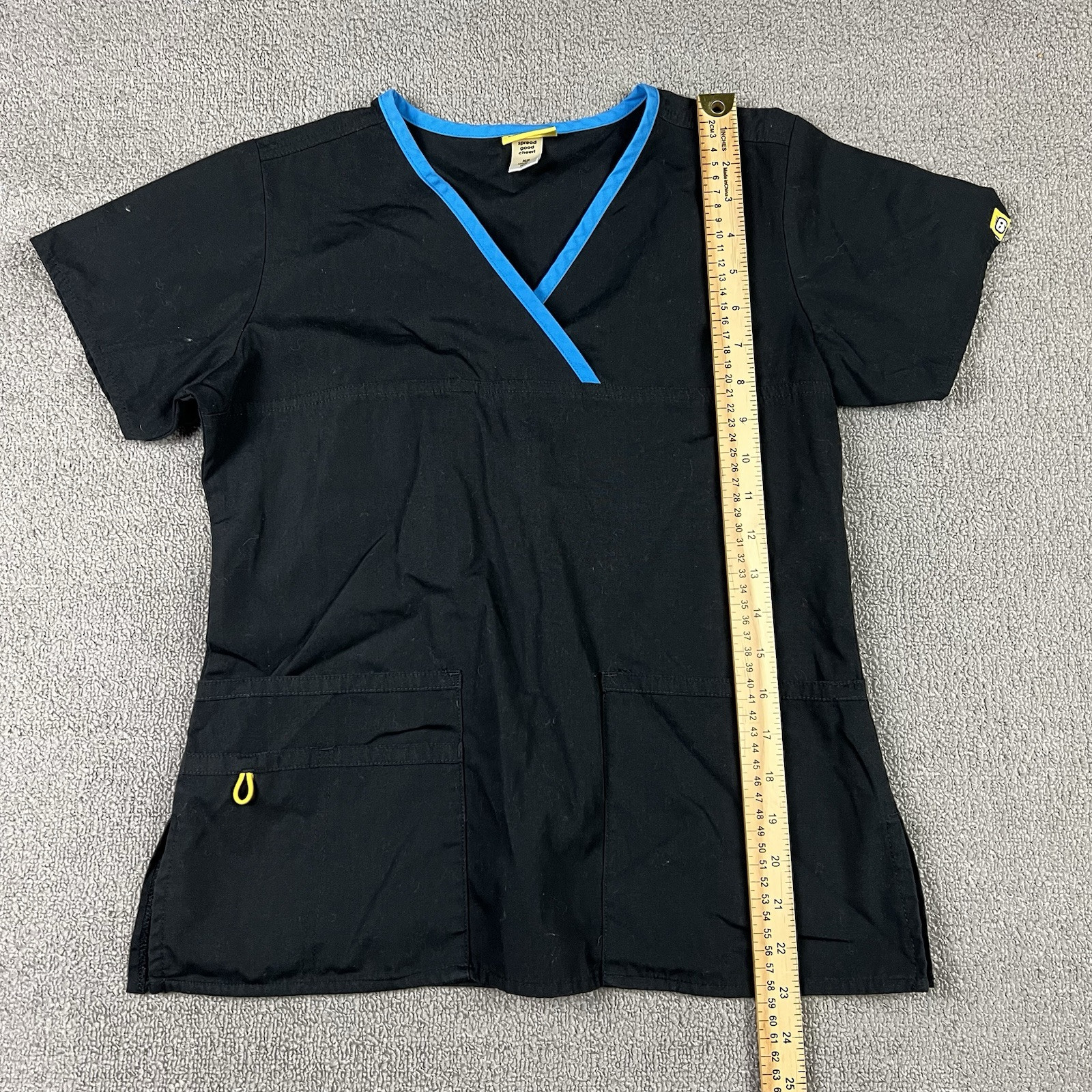 WonderWink Womens Size XS Scrub Black Shirt With Blue Accents